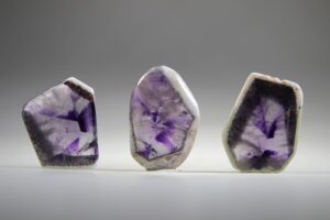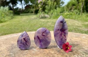 Als eerste kristal in deze blog willen we de cabochon en geslepen plakken van een voor ons unieke Amethist behandelen. Deze wordt Apex of Ster Amethist genoemd. Zelf hadden wij deze nog nooit gezien, maar op internet waren ze te vinden. Deze Amethist heeft mooie sterachtige patronen vanbinnen. We zijn heel erg blij dat we deze nu ook in de winkel hebben.