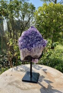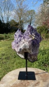 Een aantal jaren geleden hebben we de nieuwgevonden, indrukwekkende Amethist Kathedraal/Elestiaalpunten uit Bahia, Brazilië kunnen inkopen. Daarna hebben we deze niet meer gezien. Nu hebben we deze weer kunnen inkopen. Ze staan allemaal mooi rechtop in een speciaal voor ieder kristal gelaste stalen houder. Dit zijn echte krachtpatsers qua energie, dus zeer geschikt voor een praktijk of groepsruimte, maar ook een sieraad voor het interieur.
