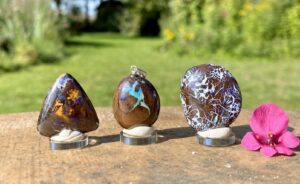 Als eerste willen we laten weten dat we weer prachtige getrommelde Boulder Opalen hebben binnengekregen uit Lightning Ridge, Southern Australia. De Opalen zijn over het algemeen iets kleiner dan die we hadden, maar deze bevatten het zo gewilde, prachtige vuur in zicht. Sprankelende spikkeltjes van kleur die als sterren stralen als je ze in het licht houdt. We zijn er heel blij mee. We hebben van een aantal hangertjes gemaakt. We hebben ook ruwe Boulder Opalen binnengekregen.