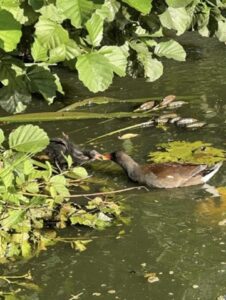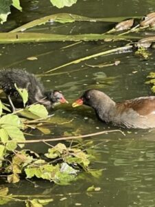 We hadden ook kunnen zeggen: Liefde overwint alles. Dit geldt ook zeker voor de waterhoentjes die bij ons in de vijver wonen. Vanaf de lente doen ze verwoede pogingen om een nestje met eitjes uit te broeden.