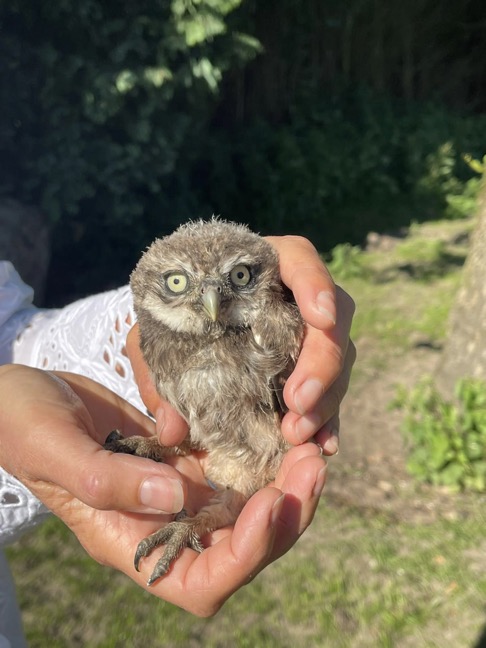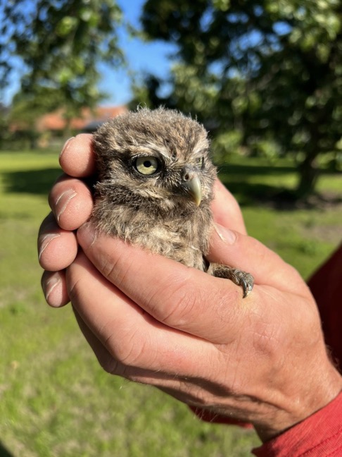 Weer even terug naar de Steenuilen. Nadat we deze steeds zagen dachten we erover om een nestkast aan te schaffen. Nu werkt een lieve vriendin, Wendy genaamd, als vrijwilligster bij een uilen vereniging. Dit is de vrijwillige uilenbescherming van Noord-Brabant, www.brabantslanddschap.nl. Zij vertelt dat ze speciale nestkasten hadden die ook Marter proof zijn. Zij heeft ervoor gezorgd dat wij een kast van de vereniging kregen, die ze op een geschikte plaats zijn komen ophangen. Het leuke van Steenuilen is dat deze ook overdag vliegen, zodoende zie je ze eerder. Al binnen een week zagen we af en toe een Uiltje naar de kast vliegen. We hoopten zo dat er jongen geboren zouden worden. En toen we ze veel zagen vliegen met wormen in hun bek konden we niet wachten op de controle van de Uilen vereniging. En sinds vorige week na het checken van de nestkast weten we dat er 3 prachtige, gezonde Uiltjes geboren zijn. Ze staan al op het punt om uit te vliegen. Wat een cadeau.