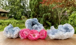 Een oude bekende, die we al vanaf het begin in de collectie hebben is de hemelsblauwe Engelensteen Celestien, ook wel Coelestien genoemd. Deze komt uit Madagaskar. We hebben zo’n 2 weken geleden een grote hoeveelheid hiervan binnengekregen. We zijn nog steeds niet klaar met alles uitpakken, maar er ligt in het Pakhuis al een grote hoeveelheid te stralen. Maar ook bij deze steen is er een nieuwe geboorte, we hebben namelijk een nieuwe beschrijving voor dit prachtige kristal geschreven, eentje die de energie van nu weergeeft. Ook kristallen evolueren, openen zich net als ons op een steeds hoger level. Zo apart dat we allemaal toen we de proefversie van de blog lazen, voelden dat de oude beschrijving niet meer voldeed, dat deze niet meer klopte met de energie die het kristal uitstraalt. Dus hebben we deze gechanneld. Zo heerlijk als je voelt dat de energie van een beschrijving weer klopt, daar worden we heel blij van. Hieronder de nieuwe beschrijving die nu ook online bij de steen staat.