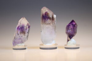 Dit zijn allemaal Meesterkristallen en worden in Namibië gevonden. Dit kristal is een fantastisch cadeau van het Rijk van de Kristallen om je ziel terug te vinden en te laten openen. Het kristal hoort bij de belangrijkste Aquarius Kristallen die ons begeleiden in deze tijd. Het kristal heeft een zeer oude ziel en een extreem hoge vibratie en voelt als vloeibaar licht. Het verbind je met het multidimensionale raster waar het genezing in vorige incarnaties kan uitvoeren. Het kristal straalt oneindig veel mededogen uit naar de schepping. Heel vaak zitten er amethist en/of rookfantomen in dit kristal, soms ook belletjes met water. Perfecte steen voor vergeving en diepgaande genezing van de ziel. Een brandberg rook-amethistfantoom is zeer geschikt voor het verwijderen van implantaten, aanhechtingen, zielsbezetenheid en mentale invloeden. Bij uitstek geschikt voor bewuste transformatie en ook heel goed tijdens het stervensproces. Het rookkwarts erin is namelijk een van de effectiefst kristallen die aarden en beschermen. Het neutraliseert allerlei soorten negatieve energie en leert u datgenen achter u te laten wat niet langer nuttig is. De steen heeft een positieve invloed op vitaliteit, herstel na ziekte, straling gerelateerde aandoeningen, chemotherapie, uitputting, immuundeficiënties, ME.
