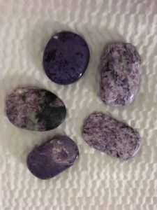 We hebben op Quartzsite alleen nog maar stenen gekocht bij onze vaste Russische handelaar. Voor de rest was het helaas niet veel soeps. Hij had weer wat Violane en Dianiet cabuchons. Van Violane hebben we ook een paar grotere geslepen stukken kunnen kopen die heerlijk in de hand liggen. De kleur is prachtig! Van de kleinere cabuchons laten we bij onze vriend weer mooie sieraden maken. We hebben ook 3 cabuchons van zeldzame Russische paarse Scapoliet gekocht. Deze worden in Sterling Silver gezet als hanger. Ze zijn doorschijnend lavendel van kleur, echt zo’n bijzondere energie. Helaas had hij er niet meer van.