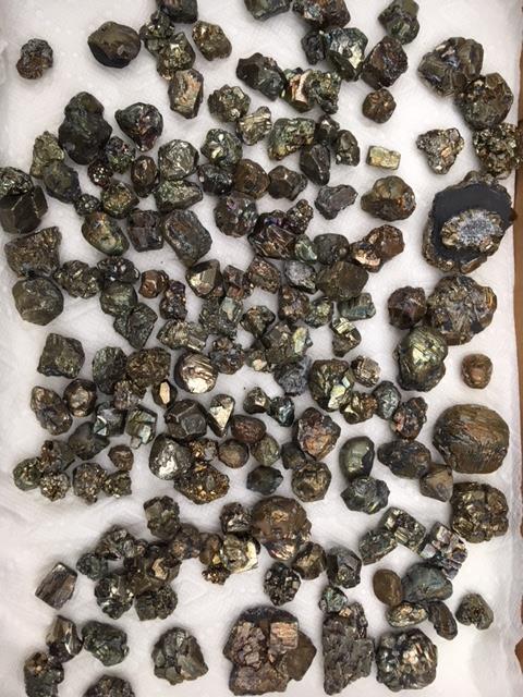 Ze hadden deze keer nog geen Andara Obsidianen, die zouden over een half jaar komen, maar voor ons niet erg, want we hebben er nog genoeg. We hebben bij hen wel iets nieuws ingekocht en dat zijn natuurlijke, ruwe Bismuth stukjes. Ze zijn gevonden in Ecuador. In de tijd dat ze gevormd zijn was daar waar zich nu bergen bevinden een zee en hij liet zien dat er exemplaren zijn waar zich Ammonieten in bevinden. Heel apart om te zien. Dus voor de liefhebber hebben we nu natuurlijke Bismuth formaties.