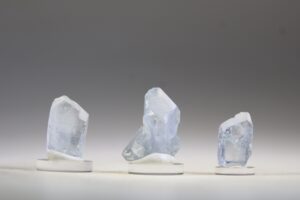 Als laatste in deze blog Celestien uit Michigan. Dit zijn losse, platte, zachtblauwe Celestien kristallen. Deze hebben we totaal ergens anders gekocht dan de Meteoriet Amethist, puur alleen maar, omdat deze ons een één of andere manier riepen. Nog totaal onbewust van de verbinding met bovengenoemde Meteoriet Amethist uit Canada.