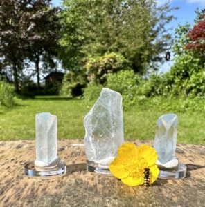 We voelen ons zo dankbaar en vaak ontroerd met hoeveel liefde kristallen en mineralen hun specifieke eigenschappen ten dienste stellen van de mensen, dieren, planten, eigenlijk hun omgeving, om de trilling te helpen verhogen, maar zo onvoorwaardelijk. Zij kennen geen tijd. Ze zijn hier al miljoenen jaren. De kristallen zijn onze bondgenoten die ons weer helpen om ons uit te lijnen in deze tijden van angst, onzekerheid en chaos, waarin veel mensen in de war, zoekende, of de weg kwijt zijn. Door hun stabiele, kalmerende, liefdevolle energie kunnen wij weer rust en vertrouwen krijgen. Zij weten met heel hun wezen dat tijd niet bestaat, dat wij voor eeuwig leven, dat een ziel nooit kan sterven. Kristallen zijn bewaarplekken van energie, levende bibliotheken. Ze geven ons hoop, want ze hebben de blauwdruk van de paradijselijke aarde in zich. Omdat ze de volledige cyclus op aarde doorlopen hebben, hier altijd aanwezig zijn geweest, dragen ze alles in zich, natuurlijk ook tijden waarin het niet fijn was, maar daar hebben zij geen oordeel over. Kristallen zijn ‘heel’ in alles. Wij mensen incarneren in delen, komen en gaan, komen en gaan. Delen leven in paralelle-levens of -universa en een deel op aarde. Kristallen zijn hier altijd geweest, zijn niet weggeweest. Het kan zijn dat we ooit in gebieden waar kristallen gevonden worden heel gelukkig geleefd hebben. Die blauwdruk zit in een kristal en al deze informatie kunnen wij weer gebruiken om bij onszelf te komen, om thuis te komen.