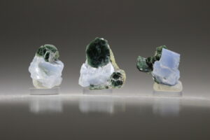 Groene Clintoniet op blauw Calciet