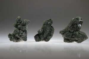 Kwarts met coating van Clinochloor is gevonden in Pelingichey deposit, Komi Republic, Prepolar Ural in Rusland. Deze bijzonder uitziende kristallen zijn kwartskristallen die helemaal begroeid zijn met groene Clinochloor. Het kwarts zie je niet meer, alleen de vorm van de clustertjes. Clinochloor is een van de krachtigste kristallen voor heling van het fysieke lichaam. De energie ervan ondersteunt cel functies en regeneratie. Het helpt om gifstoffen uit het lichaam te verwijderen en bevordert de opname van vitamines, tevens is het een effectieve pijnstiller Clinochloor zorgt ervoor dat de levensenergie die ook Chi, Ki of Prana wordt genoemd krachtiger wordt en goed door het lichaam kan stromen. Dit werkt heel vitaliserend voor het lichaam en geeft een gevoel van geluk en welzijn. Dit kristal beschermt ook tegen negatieve straling en helpt het lichaam gezond te blijven, zowel fysiek als spiritueel. Het helpt het ego los te laten en bevordert een positieve, liefdevolle houding ten opzichte van anderen en jezelf. Het stabiliseert het hartchakra en helpt je in volmaakte harmonie met je ware verlangens van je ziel te komen. Deze kristallen helpen je om contact te maken met Engelen, Gidsen, maar ook met Deva’s, Elven en andere natuur-wezens. Dit komt omdat het kristal resoneert met de hartslag van Moeder aarde, het helpt je emoties en energieën te aarden. Deze kristallen resoneren met de helderste en puurste aarde energie. Clinochloor heeft een positieve werking op hart, longen, bloedcirculatie, opname van zuurstof in het bloed en werkt ondersteunend bij kanker. Werkt ondersteunend bij afvallen en bij futloosheid, moedeloosheid en depressie.