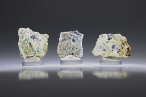 Ook deze derde combinatiesteen is een uniek, klein mineraal wat gevonden is in Californië, Amerika. Het zijn hele kleine Robijntjes met Saffier die samen op moedergesteente zitten. We hadden al een Robijn met Saffier combinatie van grotere kristallen uit Madagaskar.
