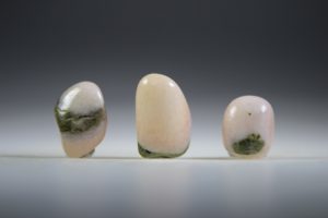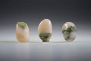 De tweede trommelsteen raakte ons gelijk toen we deze zagen, wat een lieve energie en wat een mooie zachte kleuren groen met perzik. De steen is een Calciet met Serpentijn. We waren heel benieuwd wat de steen te vertellen had en Natascha kreeg een mooie doorgeving van de steen. Je kunt ook altijd nog lezen wat de energie van Calciet en van Serpentijn is, mocht je meer informatie willen.
