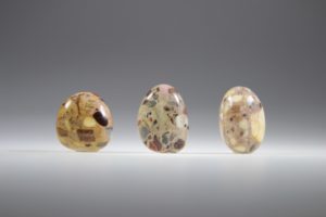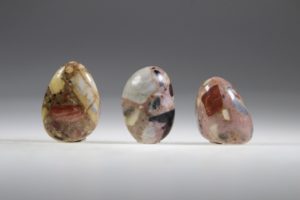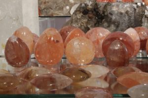 De andere steen uit Madagaskar zijn de mooiste kwaliteit Sacred Heart eieren, wat staande punten, bolletjes platte stenen en hartjes. Er is 1 dame die deze prachtige, heldere diep oranje/gele exemplaren verkoopt. Niemand heeft ze zo mooi als zij.  We hebben het afgelopen weekeinde gemerkt hoeveel klanten zo’n prachtig snoepje niet kunnen weerstaan.
