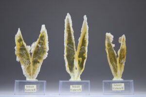 Als laatste in deze lange blog nog een steen waarvan we nu net te horen hebben gekregen, dat deze niet meer komt en dat zijn Calciet clustertjes met Seleniet kristallen erop uit Marokko. Van de week heb ik naar onze Marokkaanse vriend een appje gestuurd of hij er nog meer voor ons had, maar hij vertelde dat dit oude voorraad was en dat de mijn al zo’n 7 jaar gesloten is. Wat zonde, want wat een prachtige hoge vibratie hebben deze kristallen. Nog maar even van ze genieten dan.