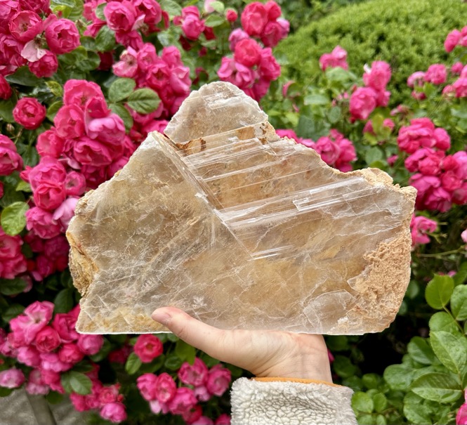 Agnitiet Maria glas (heldere seleniet) met Hematiet, Engelensteen
