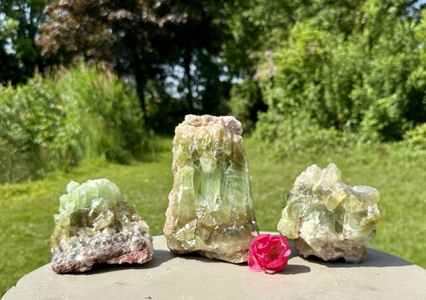 Deze krachtige en toch zachte Calciet kan heel veel voor je groei naar verlichting betekenen. Deze helpt je te resoneren met de energie van liefde en brengt rust in je hart, om alle indrukken, ervaringen en groei te kunnen integreren. Groene Calciet stimuleert het hartchakra en helpt je om te voelen waar je in je hart naar verlangt en hiernaar te handelen, dus te gaan leven vanuit je hart, waardoor je veel gelukkiger wordt. Ook stimuleert deze je om je meer af te stemmen op de natuur en de natuurwezens. Een steen in een ruimte zorgt voor een fijne sfeer, is als een opgewekte, frisse wind, die eventuele aanwezige negatieve energie reinigt en de trilling in de ruimte verhoogt. In een ruimte waar groepswerk of meditaties gegeven worden, helpt deze meditaties te verdiepen, doordat deze de energie van het hoofd, het denken, naar het hart helpt te verplaatsen. De energie van Groen Calciet kan diepgaande heling geven, met name om oude, ongezonde patronen te doorbreken en los te laten. Ook stress, woede en wrok door pijn die is aangedaan. Het is een steen die mededogen en welwillendheid tegenover anderen helpt te leven en die helpt jezelf en anderen te vergeven, waarna je je weer durft open te stellen naar anderen. Dit omdat de steen je verbindt met liefde, met je hart, waardoor je meer kan begrijpen waardoor een ander is zoals die is, maar ook dat jij de keus hebt om met iemand om te blijven gaan of niet. Dat je bewust mag worden waar je nog in pijn resoneert. Dit zorgt voor positieve groei en veranderingen in je leven. Groen Calciet bevordert overgave aan het leven en geeft inzichten vanuit het hart en de universele liefde. Doordat deze steen is verbonden met zachte, helende Engelenkrachten is het bij uitstek een steen van heling, vernieuwing en bewustwording. Ook van de mogelijkheden die je als ziel op aarde hebt en om deze te ontplooien. Groen Calsiet geeft een gevoel van welbevinden, helpt om te ontspannen en stimuleert een betere doorstroming in je lichaam. In de slaapkamer kan deze helpen om beter te slapen, fijn te dromen en spanning in het lichaam los te laten.