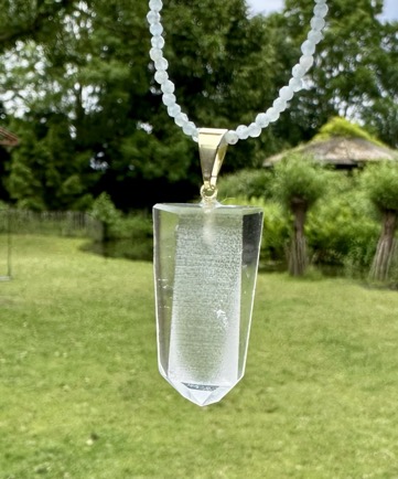 We hebben ook twee soorten hangertjes binnengekregen met een goudkleurig metalen oogje. Dit zijn Lemurische Bergkristal puntjes en de anderen bestaan uit Lithium kwarts puntjes of dubbeleindertjes.