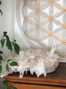 Later ontdekte ik dat dat niet zonder reden was. Ik leerde dat de uitwisseling van energie tussen kristallen onderling, maar ook naar mensen toe, moest kunnen stromen. Maar ook dat kristallen in een ruimte veel kunnen oplossen. Het verlagen van zware energie en het vergroten van positieve energie. Kristallen gaan dan een samenwerking aan met mens en dier en resoneren in ruimtes. Door mijn werk kwam ik op veel verschillende plekken. En mensen zeiden vaak: “Zodra jij hier binnenkwam voelde de energie al anders.” Ik vond dat fijn om te horen maar was zelf achteraf vaak leeg en moe. Nadat ik me er bewust van werd dat dit proces mij energie kostte kon ik het omdraaien en nu krijg ik er energie van als ik werk met kristallen in ruimtes. Dat is het mooie van bewustwording.
