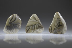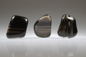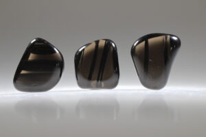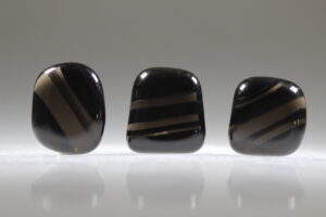 In een van de vorige blogs schreven we dat we plakken van de hele mooie gestreepte Midnight Lace of Lamellen Obsidiaan hebben ingekocht. Nu hebben we er ook trommelstenen van kunnen kopen. Dus heel fijn om bij je te kunnen dragen of een mooi plekje in huis te geven.