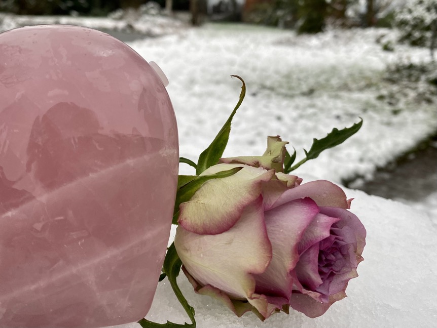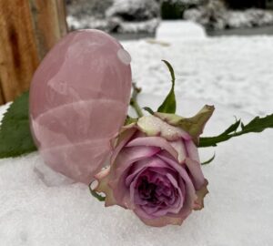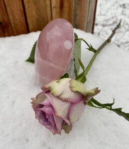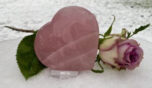Als allerlaatste in deze blog willen we laten weten dat we regelmatig de vraag krijgen of wij ook stenen hebben waar de as van een overleden geliefde in verwerkt kan worden. Dit kan natuurlijk met zowel menselijke as als die van dieren. Wij hebben nu diamant boren kunnen kopen van 6 en 8 mm, die op onze boormachine passen. Ook hebben we plastic afsluitdopjes kunnen kopen die hier precies op passen. Wij kunnen nu voor €15,- een gat in een gewenste steen boren waar wat as ingebracht kan worden. Je kunt dan dit gat met het dopje afsluiten met b.v. een 2 componentenlijm. Je zou eventueel zelf het dopje nog kunnen versieren met een klein kristalletje of misschien een klein metalen hartje of sterretje mocht je deze ergens tegenkomen. Helaas hebben wij die nog niet gevonden. Op de foto hieronder kun je een prachtig Rozenkwarts hart zien waar aan de zijkant een gat van 8 mm in geboord is. Wij zijn intens blij dat we deze service nu kunnen bieden. We zagen dat online urn-stenen worden aangeboden, maar dat de prijzen erg hoog zijn. Met de 6 mm boor kunnen ook grotere knuffelstenen geboord worden, voor als men de as in een kleinere steen aan iemand wil geven.