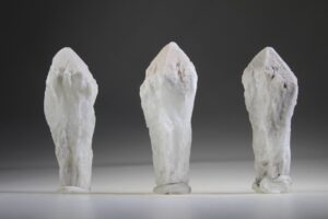Deze bijzondere Kaarskwarts, die wel een Scepterkwarts lijkt, is gevonden in Bahia, Brazilië. Ze noemen deze daar Snow Candle Quartz. In de channeling van de steen kwam de naam “de Witte Vlam van Compassie” door. Deze stenen laten een contrast voelen. Ze zijn wit en gevonden in het donker, in de aarde. Ze brengen licht in het donker. Als een kaars, vlam, of een lichttoorts is dit kristal een lichtdrager.