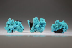 Ook hebben we uit Congo een aantal zeldzame Chrysocolla mineralen in kunnen kopen, de kleur is intens blauw en ze zijn zo delicaat van structuur. Dit is iets wat een verzamelaar ook zal aanspreken. De steen is een Chrysocolla, pseudomorf Malachiet, pseudomorf Azuriet en is gevonden in de Lupoto mijn, Lubumbashi, Katanga in Congo. Pseudomorf is een mineraal dat op moleculaire schaal een andere structuur heeft gekregen, maar hetzelfde kristalrooster houdt na een chemische reactie. Deze zeer speciale Chrysocolla pseudomorf na Malachiet-Azuriet is de oorspronkelijke steensoort compleet vervangen door een andere steensoort, maar waarbij de vorm van het oude mineraal behouden is gebleven. Maar de energetische afdruk van deze stenen die geheel of gedeeltelijk zijn vervangen, blijft aanwezig in het mineraal. Deze unieke mineralen uit Congo zijn einde 2016 ontdekt en inmiddels is de mijn alweer leeg.