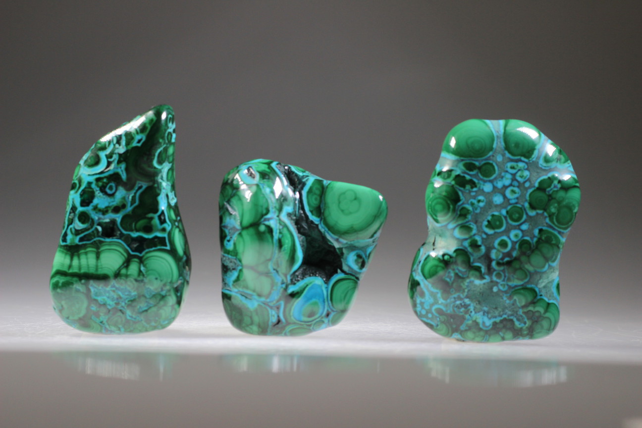 We zullen deze blog beginnen met de stenen die uit Afrika komen, we hebben uit dit continent weer verschillende exemplaren ingekocht. We hebben deze keer wat grotere heel betaalbare Azuriet trommelstenen kunnen inkopen. Dus heel mooi om ons assortiment aan te vullen. Uit Congo hebben we weer prachtige wat grotere, gepolijste Malacolla ingekocht. Malacolla is de naam die men tegenwoordig gebruikt voor de steen die een combinatie is van Malachiet en Chrysocolla. Van dezelfde Afrikaanse man hebben we ook weer de prachtige Malachiet schedels ingekocht. Omdat de kwaliteit dit jaar weer zo mooi was, hebben we er veel ingekocht. Bij Malachiet is het ook belangrijk of ze op de juiste manier geslepen worden en je de mooie patronen goed kunt zien. Deze schedels hebben zulke mooie patronen dat zelfs als iemand niet van schedels houdt, de kwaliteit van de Malachiet kan waarderen. Ook de glans is prachtig, deze man kan zo ongelooflijk goed polijsten, ze glanzen je tegemoet. Malachiet polijsten is echt een kunst, vaak zijn de stenen toch wat dof. We hebben kleine tot middelgrote schedels ingekocht. Dus voor liefhebbers van schedels een aanrader.