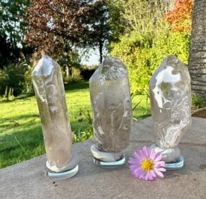 Als eerste een kristal welke via de foto uit Brazilië gelijk met ons allemaal resoneerde. Niet alleen het spectaculaire uiterlijk, maar ook de energie. We vroegen waar de patronen op de kristallen en clusters uit bestonden en in Brazilië dacht men wit Calciet. Voor ons maakt het niet echt uit, omdat het om de energie van het kristal gaat, maar wat een prachtige patronen hebben deze unieke Rookkwarts kristallen uit Serra do Cabral, Brazilië. We hadden deze nog nooit eerder gezien. Na de channeling met Natascha haar hogere zelf bleek dat we niet voor niets tot deze zo werden aangetrokken. Ze hebben weer zulke mooie eigenschappen, waarmee ze weer veel mensen kunnen ondersteunen.