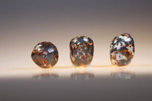Een andere vrij zeldzame trommelsteen, die we nu in de collectie hebben, is gevonden in Namibië. Als deze stenen gevonden worden komen ze meestal uit Brazilië, maar deze uit Namibië komen zelden op de markt. De naam van de steen is Tantaliet. De energie van deze steen is zeer uniek. Krachtig beschermend kristal bij negativiteit op allerlei vlakken. Zeer goed ook als hulpmiddel in een praktijk.