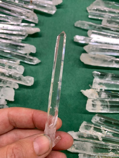 In Tucson vertelde onze Colombiaanse vriend dat hij Andara Obsidianen zou polijsten. Hij zou ook hartvormen en staven ervan maken. Helaas had hij deze kristallen niet meegenomen, die krijgen we dus pas in Tucson eind januari, maar we hebben bij hem wel een flatje met prachtige glasheldere Colombiaanse Lemurische lasertjes gekocht. De kristallen uit Colombia zijn de laatste jaren zo enorm kostbaar geworden dat we ze nooit meer bijgekocht hebben. Maar deze kregen we voor een aardig bedrag en omdat ze zo dun zijn en weinig wegen zijn ze niet al te kostbaar. Lasers en ook de clusters uit Colombia hebben een unieke energie, al zijn de kristallen glashelder, ze hebben een soort gouden gloed over zich. Het geluid als je ze zachtjes tegen elkaar tikt is zo prachtig, ze zingen echt. Als je met klank healing werkt of de kracht van geluid gebruikt dan ook zijn dit prachtige instrumentjes.