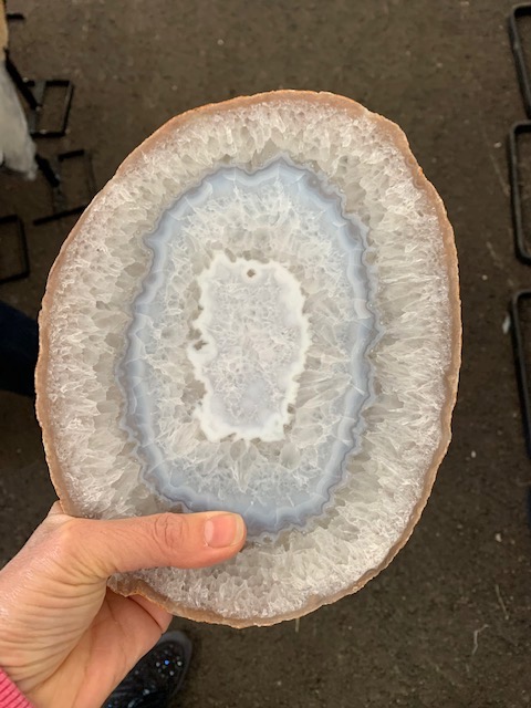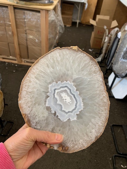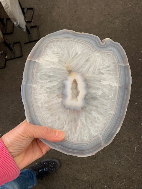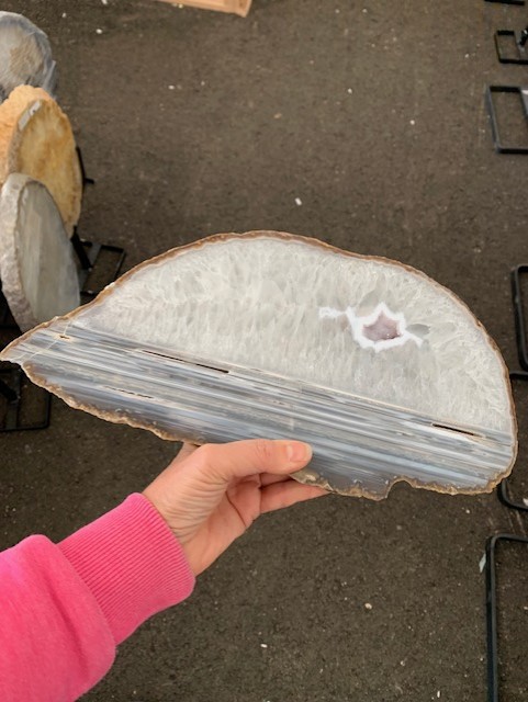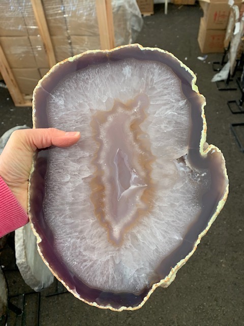 We hebben ook een grote collectie prachtige Agaat plakken op een standaard. Deze zijn heel erg mooi om in huis te zetten, je ziet ze steeds vaker terug in bladen en tv-programma’s waarin ontwerpers een huis stylen. Dus heel trendy op dit moment. Ze worden ook vaak in kasten gezet. We hebben er ook een aantal hele grote van. Een paar ervan zijn ook Prasioliet of groene Amethist.