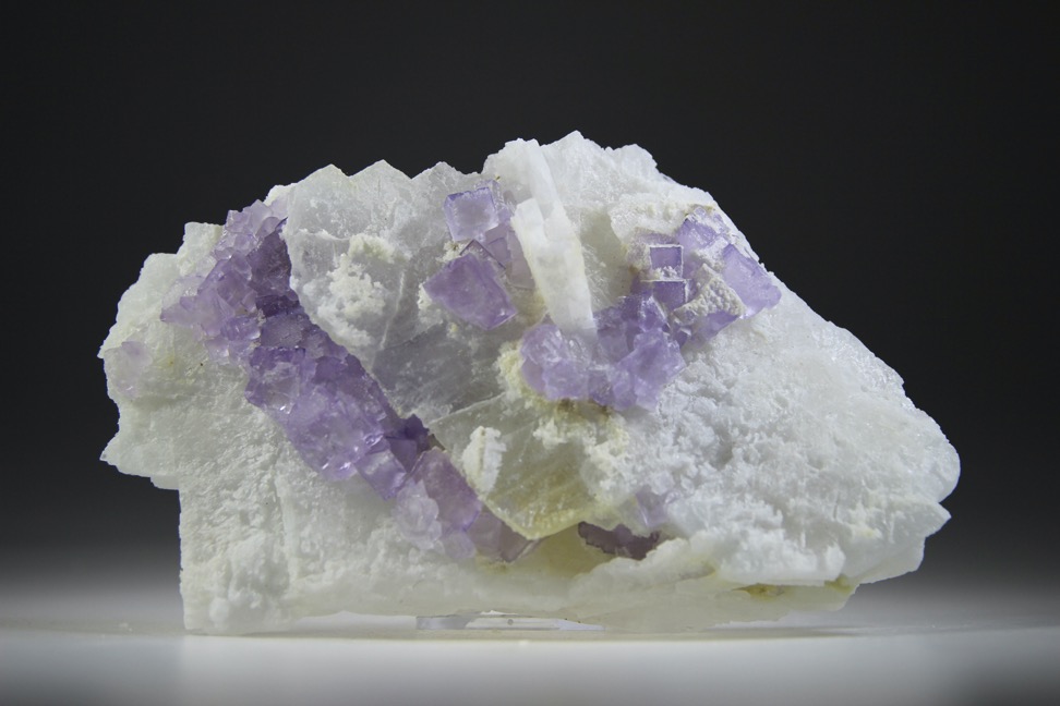Een speciale steen met een hoge vibratie is Lavendel Fluoriet op witte Celestien. Deze kristalletjes uit Melchor, Muzquiz Coahuila, Mexico bleven ons maar roepen. Sommige van de kleine stenen bestaan uit alleen een prachtig Fluoriet kristal met haast geen zichtbare Celestien eronder, maar de energie van beide kristallen zit toch versmolten met het Fluoriet.