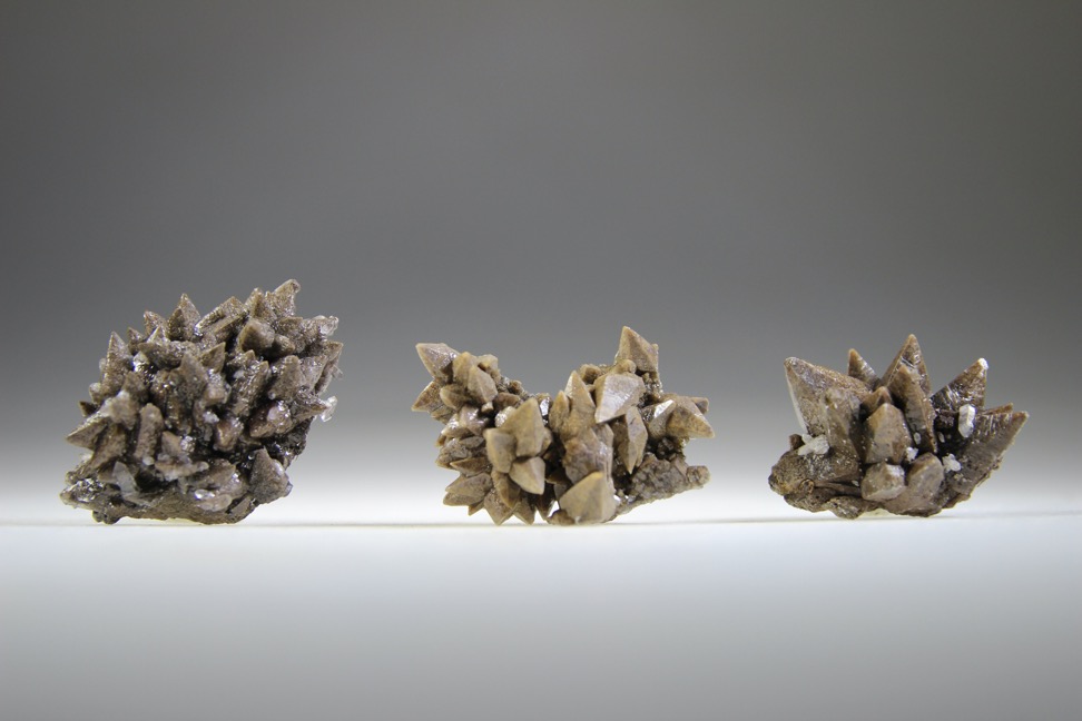 Dan zullen we nu gelijk nog maar een nieuwe Calciet noemen. Dit zijn hele mooie gevormde bruine Calcieten in de vorm van hondentanden, vandaar de naam. Ze variëren van licht tot donkerbruin en een gedeelte van de kristallen die wij hebben ingekocht lijken wel te zijn bestrooid met suiker van kleine Seleniet kristalletjes. Ze komen uit het Santa Eulalia district, Chihuahua, Mexico.