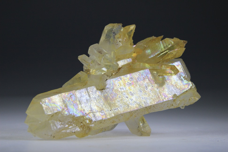 Regenboogmayaniet is een zeldzame, nog niet lang geleden ontdekte steen uit Amerika. Deze is gevonden in Arkansas, waar de Lemurische energie op aarde heel sterk vertegenwoordigd is. Het is een donkere Golden Healer kwarts met iriserende oppervlakjes die nu gevonden wordt om te helpen bij ons evolutieproces en dat van alles om ons heen. Hij ondersteunt ook bij planetaire veranderingen. De steen is zelfreinigend en is verbonden met de regenboogwerelden en, doordat het alle kleuren bevat, met alle chakra’s en stralen. Het geeft nieuwe impulsen aan vreugde, focus, doel en het bewandelen van je ware pad en meer, zijn potentie is nog oneindig groter. Het is een kristal met een zeer hoge vibratie die helende bioscalaire golven uitstraalt, die heling op zowel multidimensionaal als op cellulair niveau geven. Hierdoor veranderen je cellen en je blauwdruk in de meest optimale vorm, waardoor schadelijke patronen in je voorouderlijke DNA-tijdlijn gedecodeerd worden. Het brengt balans in je cellen op celniveau en beschermt de matrix van het lichaam tegen elektromagnetische straling. Deze Bio-scalaire golven activeren de chakra’s en de meridianen en zorgen voor heling van de etherische blauwprint op het gebied tussen geest en materie, waarna het lichaam kan helen. Dit zorgt voor grote veranderingen in je leven die weinig moeite zullen kosten. Regenboogmayaniet helpt gifstoffen die je uit de omgeving hebt opgenomen en die tussen de verfijnde lichamen van je etherisch lichaam zijn gaan zitten op te ruimen. Ook helpt de steen bij het opbouwen van nieuwe, beter steunende structuren op elk niveau terwijl je het verruimde bewustzijn van de new age binnengaat. De mineralen die het kwarts deze donkergele coating en talloze regenbogen hebben gegeven werden sterk geconcentreerd en deze steen zal je dan ook meenemen naar je diepste zelf om je innerlijke regenboogschatten te ontdekken. Deze bijzondere steen ondersteunt je en helpt je om door energetische veranderingen heen te gaan. Hij verbindt je met je Gidsen en Engelenhelpers. Ook zal hij je troosten in moeilijke tijden en als een zijdezachte balsem voor je aura zijn, die iedere cel van je lichaam reinigt van oude patronen, puin en karmische afzettingen en verenigt daarna je cellen die volledig worden geactiveerd waarna je lichtlichaam wordt verankerd. De steen helpt je de waarheid te spreken en in je kracht te komen. Hij is zeer krachtig als je hem op de zonnevlecht legt, waar hij oude emotionele pijn naar buiten trekt en onvoorwaardelijke liefde naar binnen laat stomen. Regenboogmayaniet creëert een ondoordringbare interface rondom de buitenkant van de aura om het biomagnetische omhulsel en multidimensionale lichamen te beschermen. De steen herziet het energieveld, opdat het optimaal kan functioneren en zijn hoogste frequentie kan bereiken. Zelfs de kleinste beetjes giftige of negatieve energie die in je aura zijn achtergebleven lost deze steen op, wist deze ook uit het geheugen van je cellen en vervangt haar door goddelijke vonken. Het is de perfecte steen voor multidimensionale en intercellulaire healing. Ook kun je met de steen perfect op afstand healen. Dit is een echt ascensiekristal.