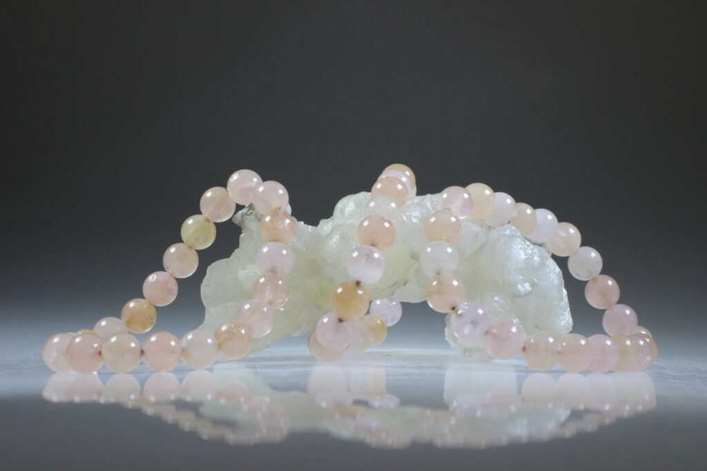 Als laatste in deze blog wil ik het hebben over Morganiet. Zo mooi om met de steen te eindigen waar eigenlijk de winkel door ontstaan is. De steen die de liefde voor kristallen heeft laten ontwaken. Morganiet is een roze Beril, dus familie van Aquamarijn die een Blauwe Beril is. De sieraden zijn facet geslepen en ook deze zijn eigenlijk juweeltjes. Al een tiental jaren worden ze erg gezocht door grote juwelen huizen die ze verwerken samen met diamant en topkwaliteit roze Toermalijn, in sieraden die liefde uitdrukken. Wij hebben er hangertjes en armbanden van.