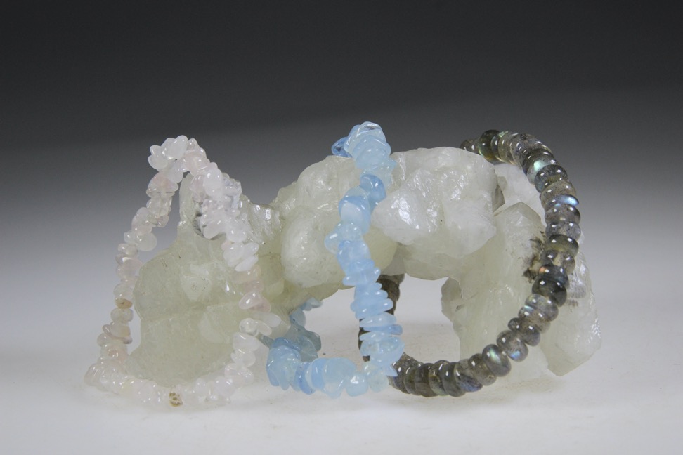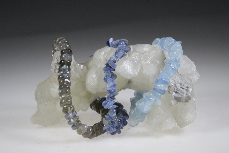 We hebben dus armbandjes die we al in de collectie hadden kunnen bijkopen, maar ook hebben we hele mooie ‘nieuwe’ exemplaren. Waar we echt heel blij van werden is een armbandje van mooie, plattere kralen van een topkwaliteit Labradoriet. Van deze steen is heel moeilijk om echt mooie armbanden te vinden, meestal zijn ze vrij mat, maar deze hebben een transparantie en prachtige blauwe glans op ze, mooier zijn ze niet te krijgen, dus heeeeel veel gekocht haha. Ik ben wat dat betreft echt een hamster, dan hebben we ze voor een paar jaar. Wim was het er helemaal mee eens, want in al de jaren dat we met stenen bezig zijn hebben we nog nooit zo’n kwaliteit gezien. De eigenaar van het bedrijf liet een paar kratten zien die ook net waren binnen gekomen en die Labradoriet armbanden waren weer zo grijs/groen, dus hij snapte dat we zoveel namen. Ze liggen al in de winkel en zijn ook al in de ‘webshop armbandjes’ te koop.