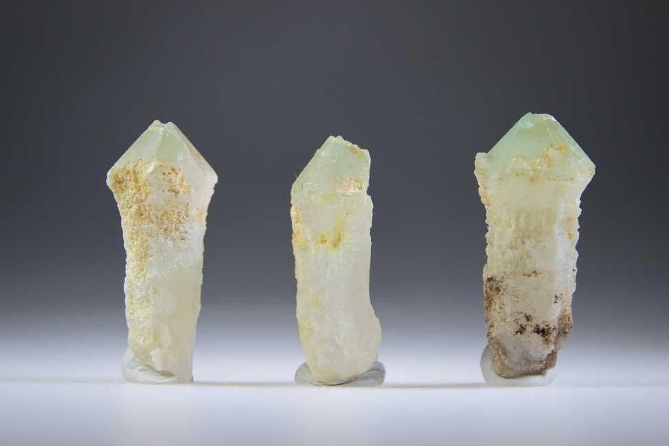 Voor wie van harten houdt, we hebben nu ook wat grotere exemplaren, hele mooie van Labradoriet, Flower Agaat en Polychroom jaspis kunnen kopen. Als laatste nog voor ons nieuw hebben we een klein doosje unieke scepters met groen Fuchsiet in het kwarts.