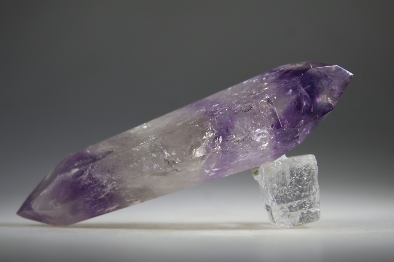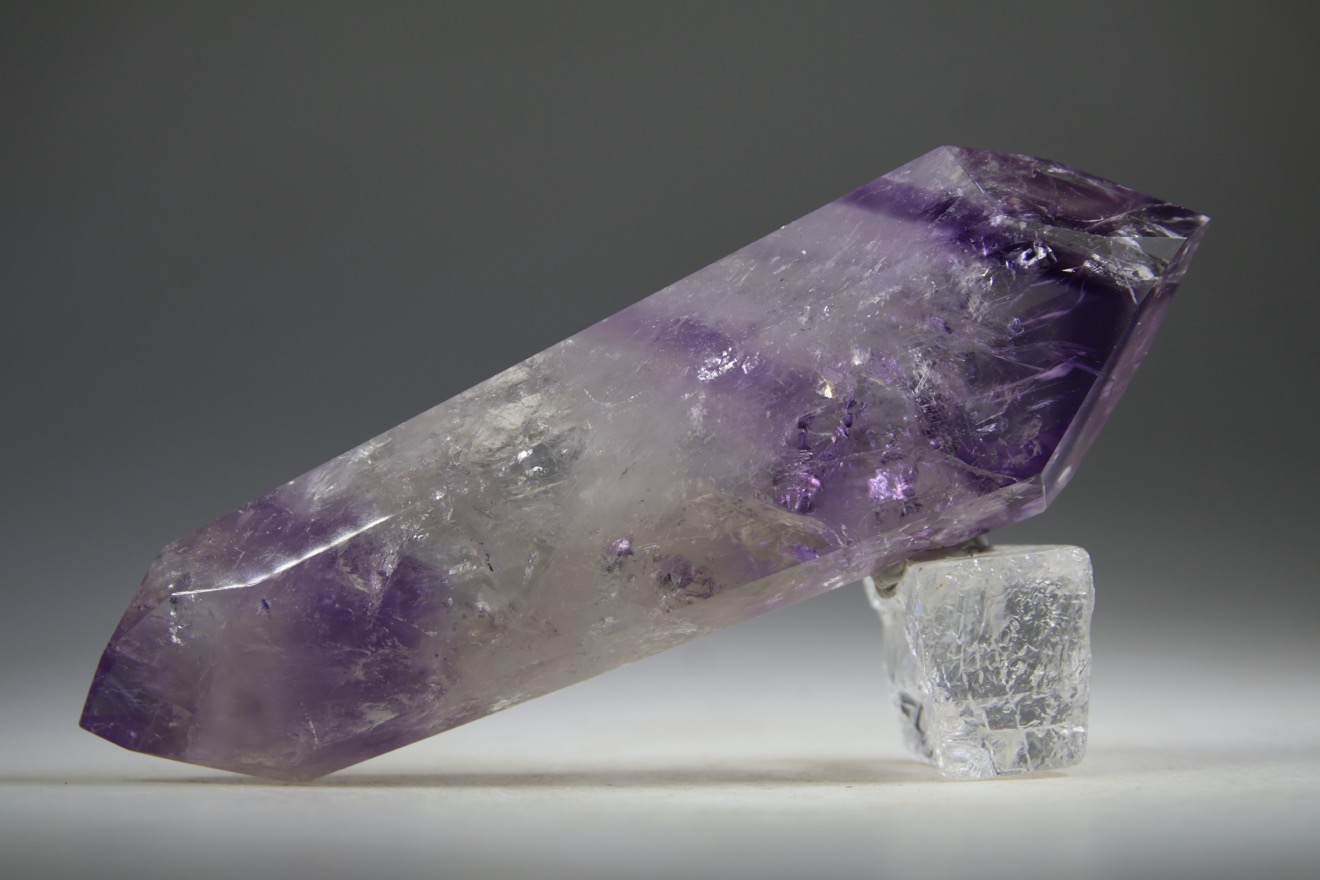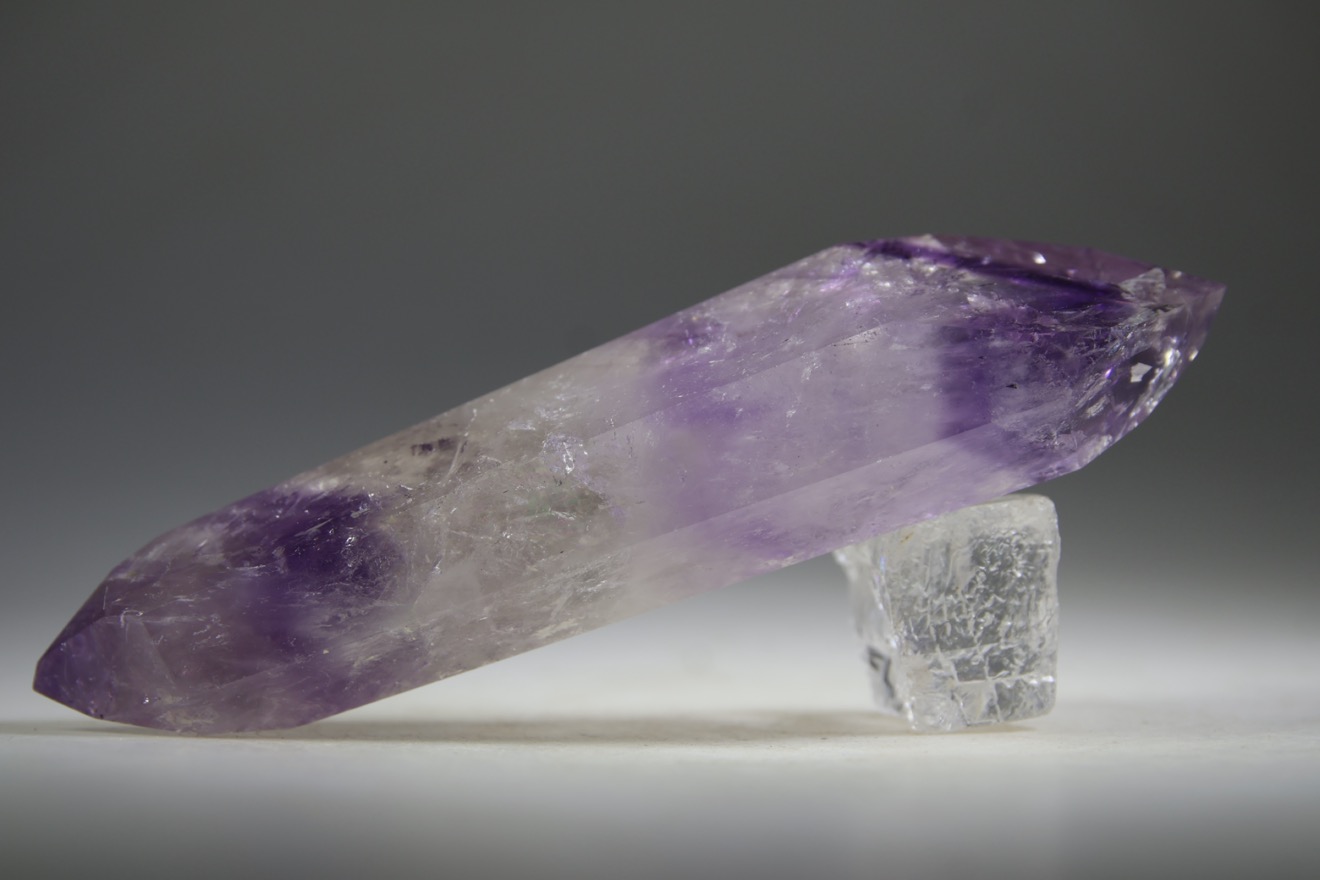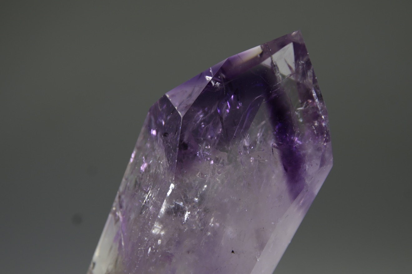 Amethistpunt met fantomen verbindt je met je eigen goddelijke oorsprong, stimuleert het denken, de heldere vermogens en de intuïtie. Hij helpt je om diepere inzichten en de oorzaken van levenservaringen te krijgen. Amethist stimuleert je om verantwoordelijkheid te nemen voor je realiteit door je te herinneren aan je relatie met de kosmos, het hogere wezen dat je bent en waarmee je alles creëert. Amethist maakt je ontspannen, wat nodig is voor het afstemmen op je hogere zelf, hierdoor ook heel geschikt voor meditatie. Hij kalmeert je gedachten geeft ook innerlijke en mentale rust. Het kristal werkt beschermend bij psychische aanvallen en zet deze om in liefde. Hij zuivert tevens de aura, werkt kalmerend en blokkeert negatieve energieën en geopatische belasting doordat hij je helpt met het opbouwen van een energieschild, een veld van spiritueel licht rond het lichaam.
