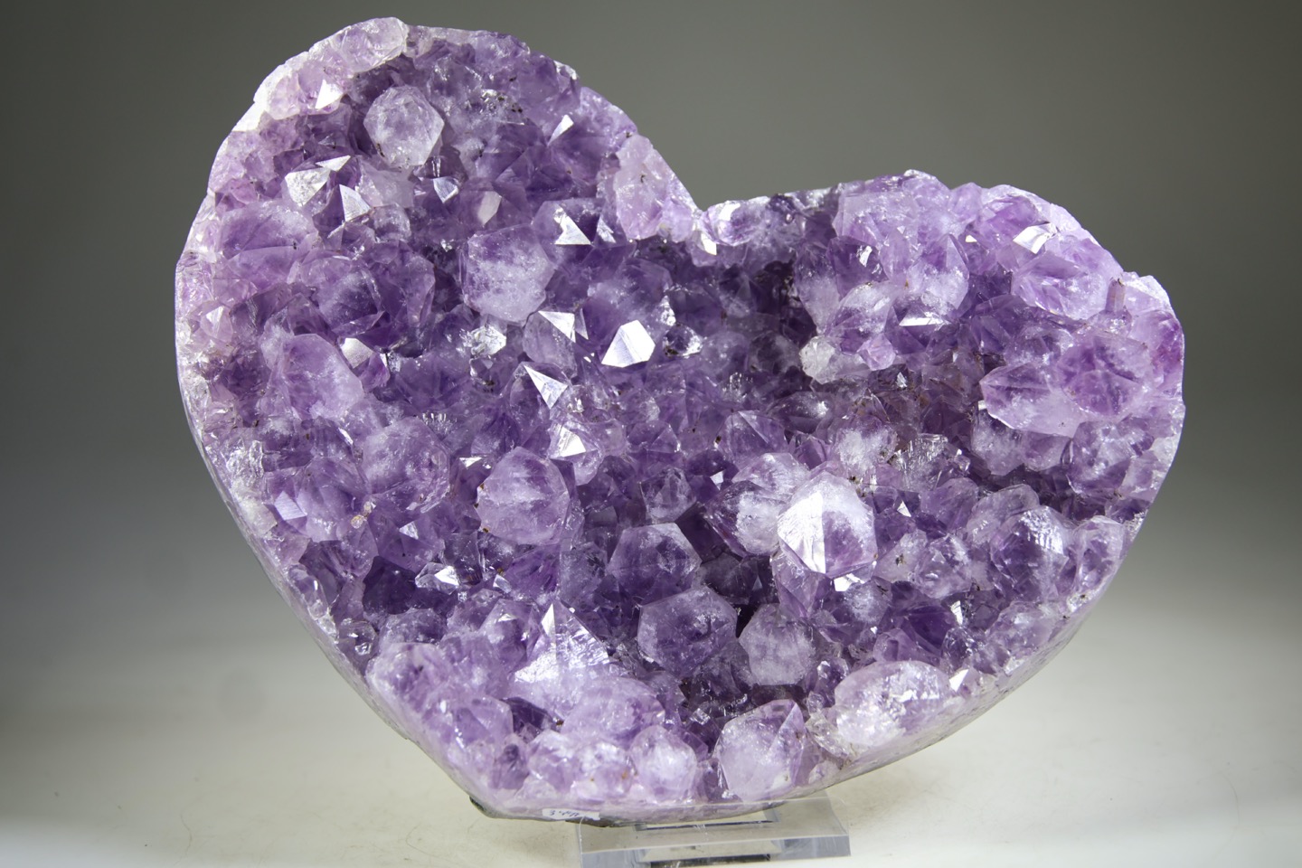 Amethist stimuleert je om verantwoordelijkheid te nemen voor je realiteit door je te herinneren aan je relatie met de kosmos, het hogere wezen dat je bent en waarmee je alles creëert. Amethist maakt je ontspannen, wat nodig is voor het afstemmen op je hogere zelf, hierdoor ook heel geschikt voor meditatie. Hij kalmeert je gedachten geeft ook innerlijke en mentale rust. Hij werkt beschermend bij psychische aanvallen en zet deze om in liefde. Hij zuivert tevens de aura, werkt kalmerend en blokkeert negatieve energieën en geopatische belasting doordat hij je helpt met het opbouwen van een energieschild, een veld van spiritueel licht rond het lichaam. Amethist helpt je bij het nemen van besluiten, bevordert het gezond verstand en spirituele inzichten, verdrijft woede, angst en bezorgdheid en verlicht leed en droefheid. Amethist samen met Sugiliet helpen je om slechte gewoonten of verslavingen te doorbreken. Een groot stuk of een geode in huis of in je praktijk geeft je het gevoel dat je bent omgeven en beschermd door een bel van licht. Het is een steen die voor iedereen fijn is, ongeacht of je in spiritualiteit geloofd of niet. In de kamer van een zieke helpt Amethist de energie zuiver houden. Spoel hem bij intens gebruik af en toe af onder stromend water.  De steen bevordert hogere bewustzijnstoestanden en helpt bij slapeloosheid en is weldadig voor pijnen, hoofdpijn, nachtmerries, woede, angst, verdriet, longen en huidproblemen.