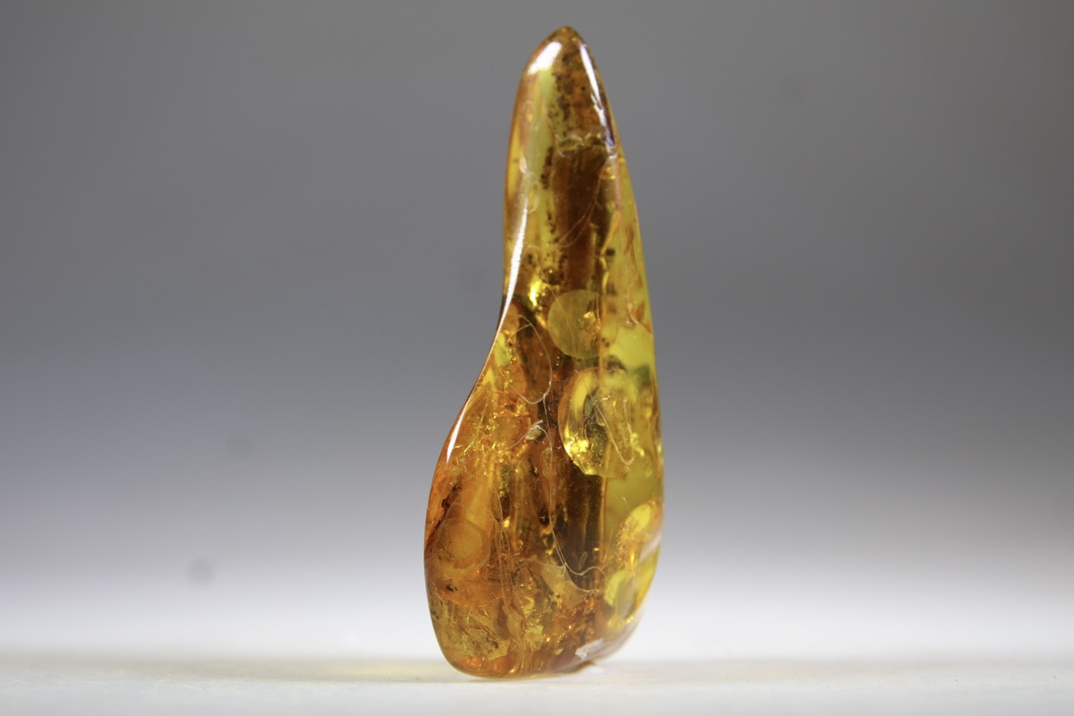 Eigenlijk is dit geen kristal, maar miljoenenjaren oude gestolde en gefossiliseerde boomhars. Deze steen die heel licht van gewicht is haalt hele oude kennis en wijsheid in je naar boven. Amber heeft een krachtige verbinding met de aarde en is een aardende steen voor hogere energieën. De steen is een krachtige genezer en reiniger, ook voor de chakra’s. Hij absorbeert negatieve energie en transformeert deze tot iets positiefs. Hij zet het lichaam aan tot zelfgenezing. Als je het gevoel hebt vast te zitten en je door angsten of fobieën verkrampt voelt, dan leert deze steen je vanuit liefde te leven en deze ook te ontvangen. Hij leert je oude emoties los te laten. Amber is een krachtige beschermer die je lagere zelf met je hogere verbindt. Hij brengt je warmte en stabiliteit in je leven en bevordert creatieve zelfexpressie. Hij zorgt voor evenwicht en geduld en moedigt het nemen van beslissingen aan en ondersteunt het geheugen. Emotioneel moedigt amber een vreedzame houding aan en geeft je een gevoel van vertrouwen. De steen doordrenkt het lichaam met vitaliteit en heeft de kracht om ongemakken uit het lichaam te verwijderen. Hij bezit het vermogen om pijn en negativiteit te absorberen en is goed voor de keel, de maag, milt, nieren, blaas, lever, galblaas. Hij vermindert gewrichtsproblemen en versterkt de slijmvliezen. Als je de steen als elixer inneemt werkt hij heel krachtig bij heel veel kwalen. Hij werkt ook als een natuurlijk antibioticum.