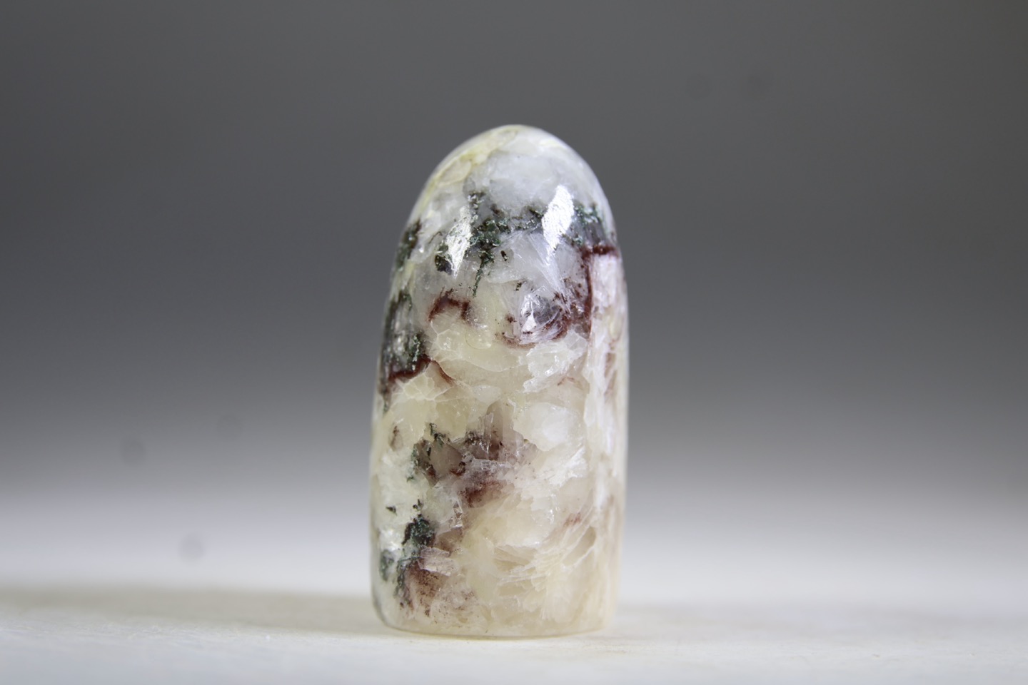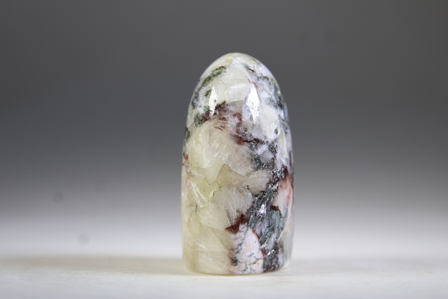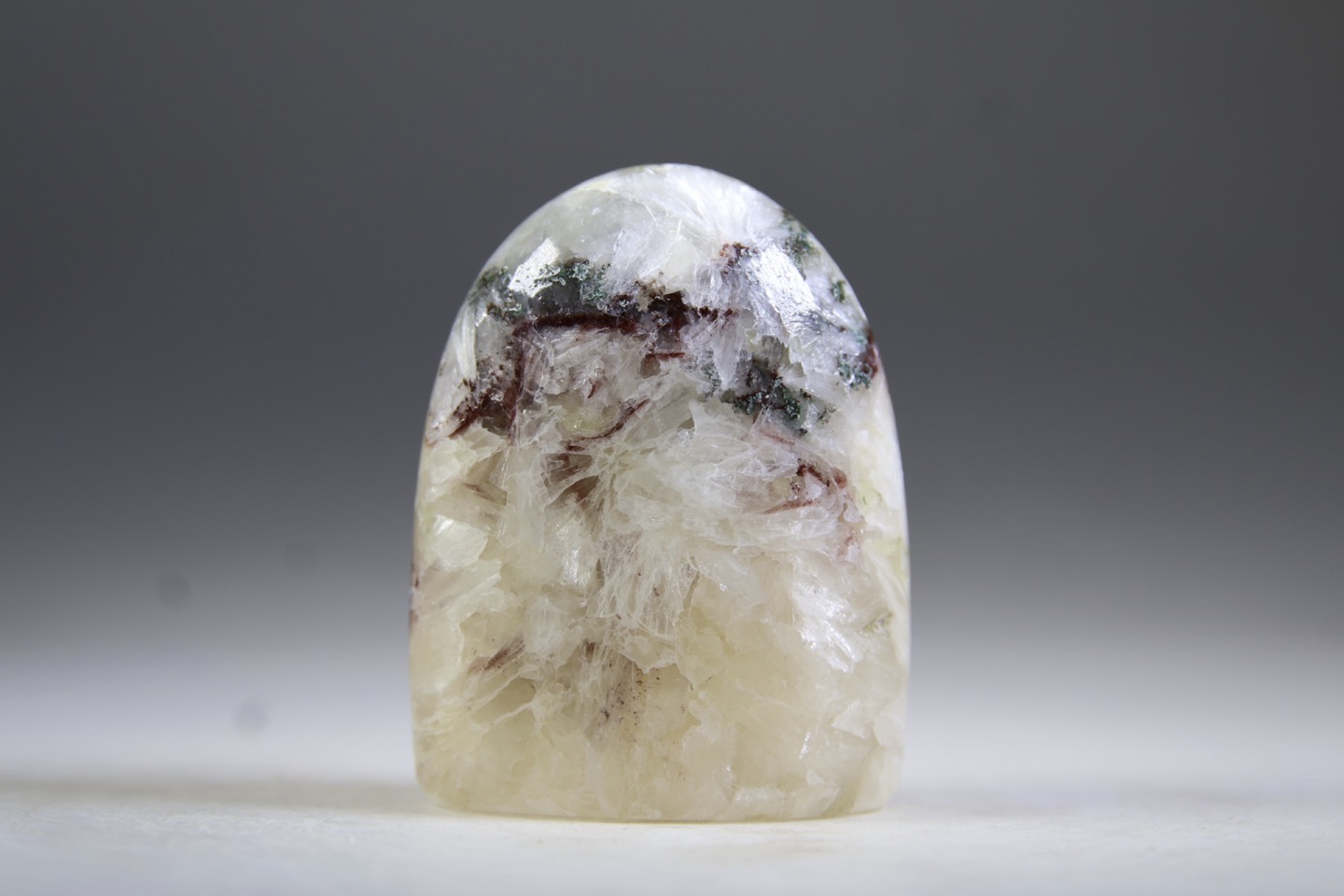 Groene Heulandiet bevordert een bewuste afstemming op het hart, het hogere hart en de liefdesfrequentie van creatie. Het witte of zachte perzik in de steen is Stilbiet. Groene Heulandiet geeft ruimte en lucht en ontkrampt het fysieke hart en het hartchakra. Wat drukt er nog op je hart, wat zorgt er nog voor dat je hart gesloten is. Deze steen laat zien en voelen waar je energie niet goed stroomt, deze bevordert de bloedcirculatie. Door het openen van je hart komen bevroren delen weer tot leven. De combinatie met het Stilbiet en de vindplaats bevatten de energie van vreugde en liefdesvelden, zijn een krachtige reiniger van het hart en helpt je om in een hogere trilling/frequentie te komen. Heulandiet is een beschermende steen, omdat deze de natuurlijke kracht en veerkracht van de aura vergroot. Emotioneel helpt deze je om gehechtheid aan oordelen vellen en om alles in hokjes te plaatsen los te laten. Heel goed voor mensen die te maken krijgen met verdriet, shock of emotioneel trauma. Deze steen brengt je bewustzijn van je hoofd naar je hart, waardoor je een veel betere toegang tot energetische informatie krijgt die je via je aura ontvangt en die je je heldere vermogens je geeft. Deze combinatie draagt de frequentie van mededogen en liefde in zich en helpt je om wrok, oordeel en sarcasme lost te laten. Stilbiet met Heulandiet ondersteunt je transitie naar het licht, om de cirkel rond te gaan maken. Ondersteunende steen voor een verzwakt hart, de spijsvertering en bij slapeloosheid, verdriet, stress en hartzeer. Stilbiet is verbonden met de drievoudige verwarmer, de meridiaan welke de levensenergie bevordert.