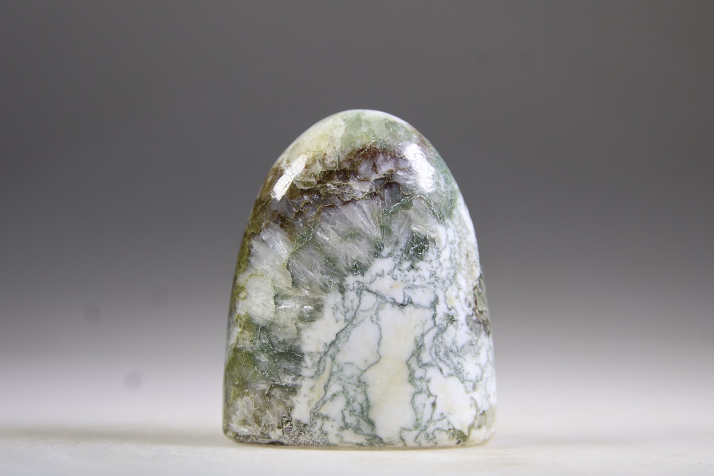Groene Heulandiet bevordert een bewuste afstemming op het hart, het hogere hart en de liefdesfrequentie van creatie. Het witte of zachte perzik in de steen is Stilbiet. Groene Heulandiet geeft ruimte en lucht en ontkrampt het fysieke hart en het hartchakra. Wat drukt er nog op je hart, wat zorgt er nog voor dat je hart gesloten is. Deze steen laat zien en voelen waar je energie niet goed stroomt, deze bevordert de bloedcirculatie. Door het openen van je hart komen bevroren delen weer tot leven. De combinatie met het Stilbiet en de vindplaats bevatten de energie van vreugde en liefdesvelden, zijn een krachtige reiniger van het hart en helpt je om in een hogere trilling/frequentie te komen. Heulandiet is een beschermende steen, omdat deze de natuurlijke kracht en veerkracht van de aura vergroot. Emotioneel helpt deze je om gehechtheid aan oordelen vellen en om alles in hokjes te plaatsen los te laten. Heel goed voor mensen die te maken krijgen met verdriet, shock of emotioneel trauma. Deze steen brengt je bewustzijn van je hoofd naar je hart, waardoor je een veel betere toegang tot energetische informatie krijgt die je via je aura ontvangt en die je je heldere vermogens je geeft. Deze combinatie draagt de frequentie van mededogen en liefde in zich en helpt je om wrok, oordeel en sarcasme lost te laten. Stilbiet met Heulandiet ondersteunt je transitie naar het licht, om de cirkel rond te gaan maken. Ondersteunende steen voor een verzwakt hart, de spijsvertering en bij slapeloosheid, verdriet, stress en hartzeer. Stilbiet is verbonden met de drievoudige verwarmer, de meridiaan welke de levensenergie bevordert.