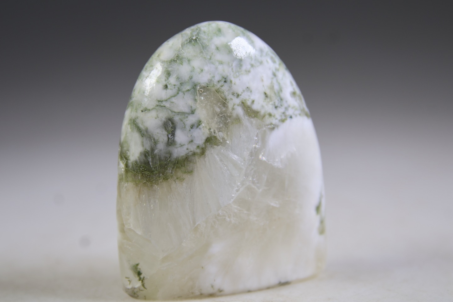 Groene Heulandiet bevordert een bewuste afstemming op het hart, het hogere hart en de liefdesfrequentie van creatie. Het witte of zachte perzik in de steen is Stilbiet. Groene Heulandiet geeft ruimte en lucht en ontkrampt het fysieke hart en het hartchakra. Wat drukt er nog op je hart, wat zorgt er nog voor dat je hart gesloten is. Deze steen laat zien en voelen waar je energie niet goed stroomt, deze bevordert de bloedcirculatie. Door het openen van je hart komen bevroren delen weer tot leven. De combinatie met het Stilbiet en de vindplaats bevatten de energie van vreugde en liefdesvelden, zijn een krachtige reiniger van het hart en helpt je om in een hogere trilling/frequentie te komen. Heulandiet is een beschermende steen, omdat deze de natuurlijke kracht en veerkracht van de aura vergroot. Emotioneel helpt deze je om gehechtheid aan oordelen vellen en om alles in hokjes te plaatsen los te laten. Heel goed voor mensen die te maken krijgen met verdriet, shock of emotioneel trauma. Deze steen brengt je bewustzijn van je hoofd naar je hart, waardoor je een veel betere toegang tot energetische informatie krijgt die je via je aura ontvangt en die je je heldere vermogens je geeft. Deze combinatie draagt de frequentie van mededogen en liefde in zich en helpt je om wrok, oordeel en sarcasme lost te laten. Stilbiet met Heulandiet ondersteunt je transitie naar het licht, om de cirkel rond te gaan maken. Ondersteunende steen voor een verzwakt hart, de spijsvertering en bij slapeloosheid, verdriet, stress en hartzeer. Stilbiet is verbonden met de drievoudige verwarmer, de meridiaan welke de levensenergie bevordert.