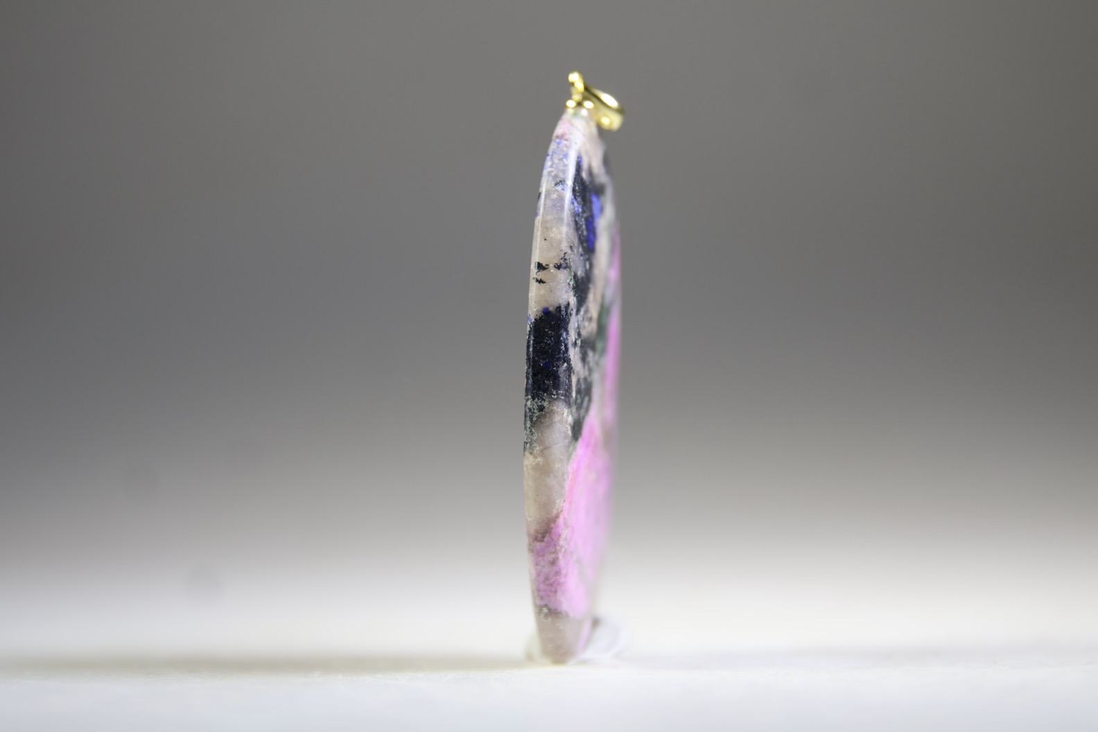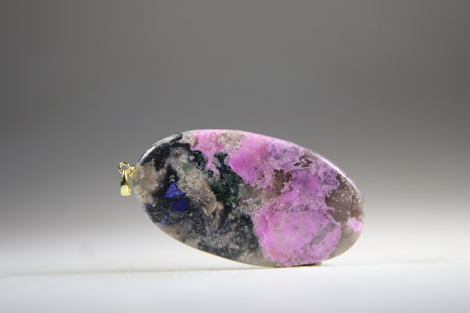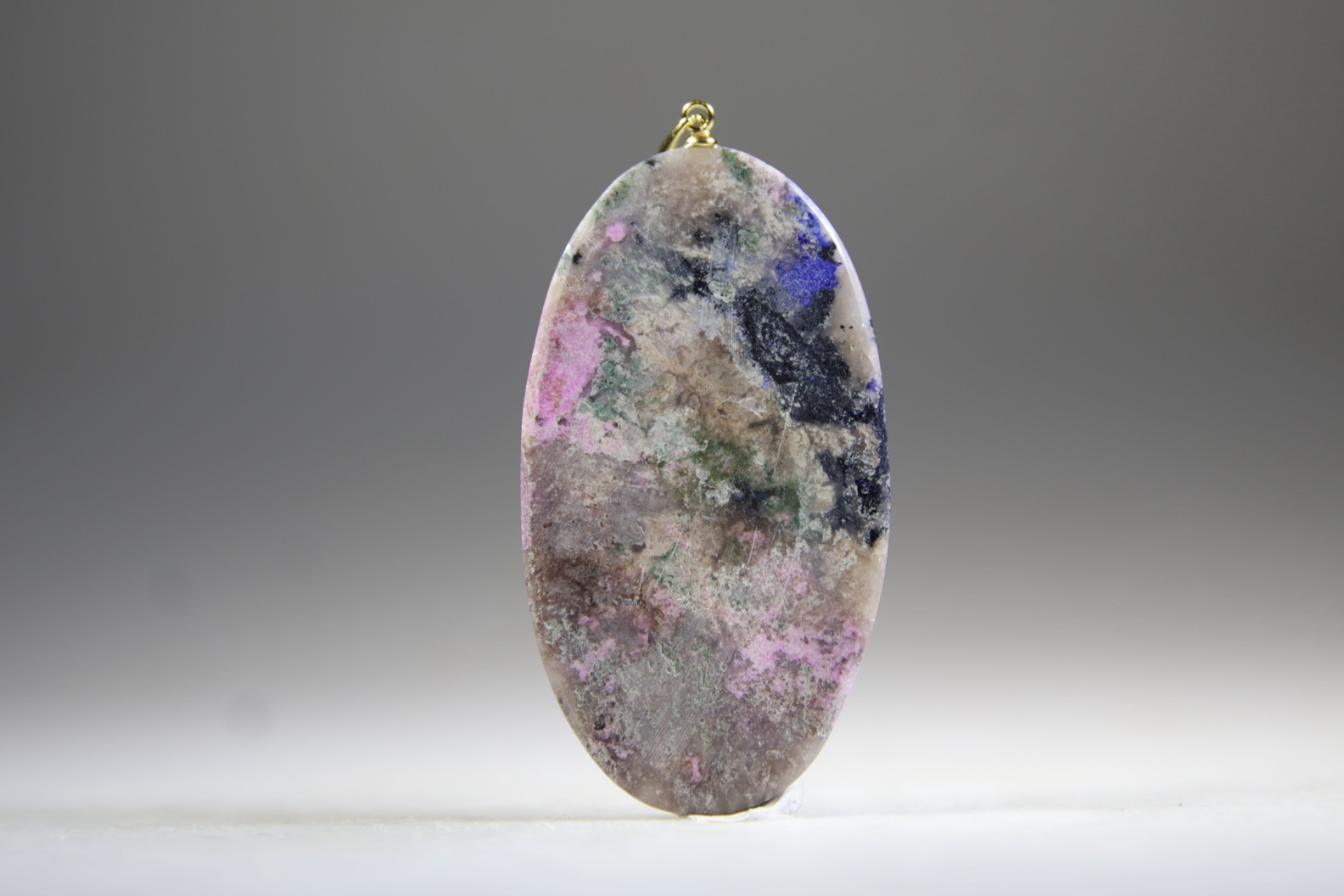Kobalt Calciet en Azuriet met oogje van Sterling zilver, gold plated