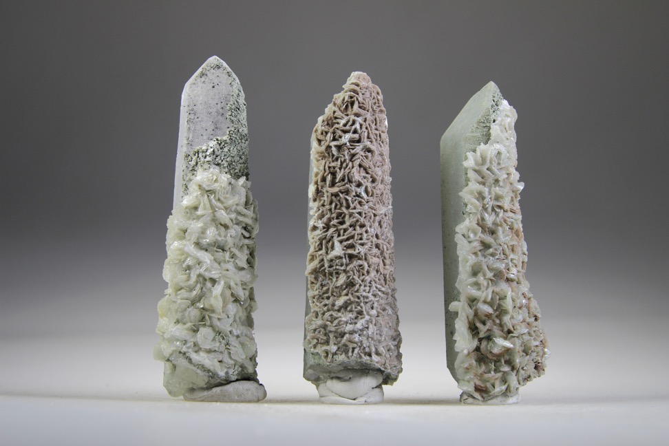 Deze lasers, soms met Calciet erop, hebben een prachtige klank in zich. Ze zijn recent gevonden in Chifeng city, Inner Mongolië. Dit is een kristal van overgang en transformatie, die je van de ene staat naar een andere kan helpen gaan. Het is een sleutelkristal om interdimensionaal te reizen, naar de Kosmos, maar ook naar je innerlijke werelden. Dit kristal helpt ons om naar binnen in onszelf, maar ook naar de Binnen-aarde te reizen. Zo boven zo beneden, zo buiten zo binnen in je, zo in het groot en in het klein. Wat in onszelf gebeurt, spiegelt ook Moeder aarde en de Kosmos. ‘Ontspan maar, laat maar los, geef je maar over, heb maar vertrouwen en laat je maar vallen’ laat dit kristal voelen. Als een vrije val voorover, met je ogen open, dus bewust ervaren wat er gebeurt. Vallen in de diepte van Moeder aarde, maar ook in je eigen lichaam. Alles gaat samenvallen. Je gaat door alle lagen heen en zakt in de leegte, zo kun je ook in je ‘Inner heart space’ komen, waar alles zich bevindt. Je komt dan in het Al. Wij zijn met alles verbonden, de Kosmos, maar ook Moeder Aarde, haar binnenwereld is verbonden met de wereld in ons. Deze lasers met Hedenbergiet werken krachtig op het borstgebied, op het hart, waar ze spanning verminderen en openen, ook openen ze het 3e oog en kruinchakra. Hedenbergiet werkt als een soort sleutel die je helpt om helemaal vanuit je hartchakra te gaan leven. Als een soort dubbele helix DNA-spiraal draait deze alles naar boven wat diep in je hart verstopt lag. Liefde voor jezelf en al wat is. Ze helpen je om dieper adem te halen, meer zuurstof en prana tot je te nemen. De natuur van de binnen-aarde is zo zuiver. Deze kristallen zijn verbonden met de groene straal, door Jules Verne beschreven als een Wonderstraal in een reis naar Iona en Staffa. Deze unieke kristallen helpen je te zakken in de leegte van jezelf in volledig bewustzijn, je maakt bewust de keus. Dus niet overgeven en achterover laten vallen met je ogen dicht. Je gaat symbolisch door de donkere aarde, die dus helemaal niet donker is, maar verlicht door de Zon van de binnen-aarde. Dit kristal helpt ons herinneren wat Adama, hogepriester van Telos, lichtstad in de binnen-aarde zei: Het doel van mensen op aarde is een spiritueel krijger te worden, die het interne licht erkent en erop gericht is de mensheid tot één menselijke familie te herenigen. Wanneer de mensheid eenmaal de Goddelijke liefde rechtstreeks van binnenuit voelt, zal iedereen zijn reden van bestaan hier op aarde kunnen begrijpen en niet langer de afgescheidenheid van zijn ziel met het licht van God ervaren.