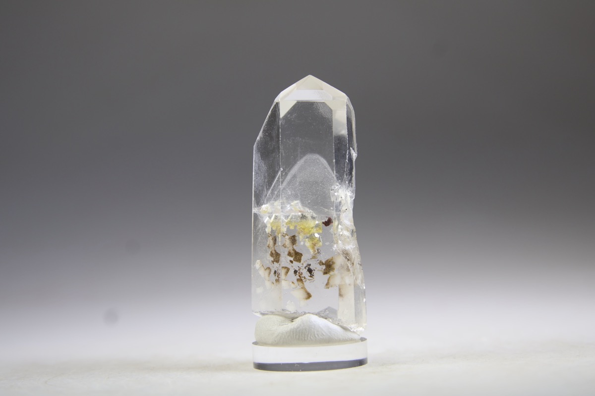 Dit prachtige kristal aardt het goddelijke Witte Licht. Met vliegende vaart komt het binnen en trekt je uit je comfort zone. Het schudt de boel flink op, tilt je op en zet je ergens anders neer. Haalt je uit vaste patronen, geeft je een bewustzijns sprong, een Kwantum sprong, maar nog steeds verbonden met de aarde. We zitten nu in een grote overgang, we voelen aan de ene kant het licht en alle liefde en aan de andere kant trekt iets ons nog terug in oude groeven/patronen. Dit unieke Kristal helpt je met je Innerlijk kind, het helpt het Licht kind, het Christuskind in je geboren worden. Het witte licht, het Christus licht, komt via de bovenste en je onderste chakra’s je lichaam binnen. Het witte licht wordt geaard en daardoor wordt het Licht kind, Christuskind, geboren. Wat er geboren wordt als man en vrouw verenigd zijn, dat is de heelheid in jezelf en via de heelheid in jezelf kun je een overstap maken naar de 5e Dimensie. Alles wat je afhoudt van die heelheid in jezelf weerhoud je ervan naar de 5e Dimensie over te gaan. Er komen nu veel kristallen op ons pad die ons helpen met deze wedergeboorte. Vanuit die heelheid worden wij opnieuw geboren, kunnen we weer gaan spelen, ons licht en blij voelen. In de 3e dimensie is het kind in ons gestorven, met name door alle conditioneringen, overtuigingen, voorouderlijke karmalijnen, pijnen enz. We zijn bijna vergeten hoe het hoort te zijn, maar als je een glimp van het licht hebt gevoeld, besef je hoe vast je zit in oude patronen, gehechtheden, pijn en drama, waarna je deze kunt gaan loslaten. Dit kristal, die de geboorte van het licht bevat, een lichtzaad is, geeft je de voeding en ondersteuning om deze reis te maken. Dit kristal verhoogt aanzienlijk de overbrenging van licht en informatie tussen de hogere regionen en de aarde, helpt ons bewust te worden en het fysieke lichaam via de etherische blauwdruk te helen. Veel mensen zijn zo gevoelig en verlangen zo naar ‘thuis’ naar de 5e Dimensie dat ze bijna weg willen vliegen, maar dit kristal houd je ook echt hier, laat je beseffen dat je het hier op aarde wilt bereiken. Er bevinden zich vele inclusies en werelden binnen dit multidimensionale kristal. Ze kunnen de volgende elementen bevatten: Sand including, Lodoliet, Golden Healer, Hematiet, lithium, limoniet, het witte Kaoliniet en Anatase kristalletjes. Bijna allemaal bevatten ze een of meerdere fantomen, sommige in de vorm van een piramide. De Anatase zorgt ervoor dat mensen die er klaar voor zijn, waarin alles in hen Ja zegt, maar die nog die hardnekkige stukken, de groeven waar we in vast zitten, om daaruit te raken. De fantomen in het kristal helpen alle blokkades, lagen af te pellen en zorgen ervoor dat we verder kunnen groeien. De fantomen helpen ons naar vele dimensies of onze wezenskern te reizen. Dit magische Light Childkristal helpt ons te schouwen in ruimten van diepe universele liefde, zodat je helemaal vanuit je hart zult gaan leven. Dit ascensie kristal maakt ons bewust van onze eigen Goddelijkheid, dat Christus niet maar naar de aarde zal komen om ons te helpen, maar dat deze in ons geboren wordt.