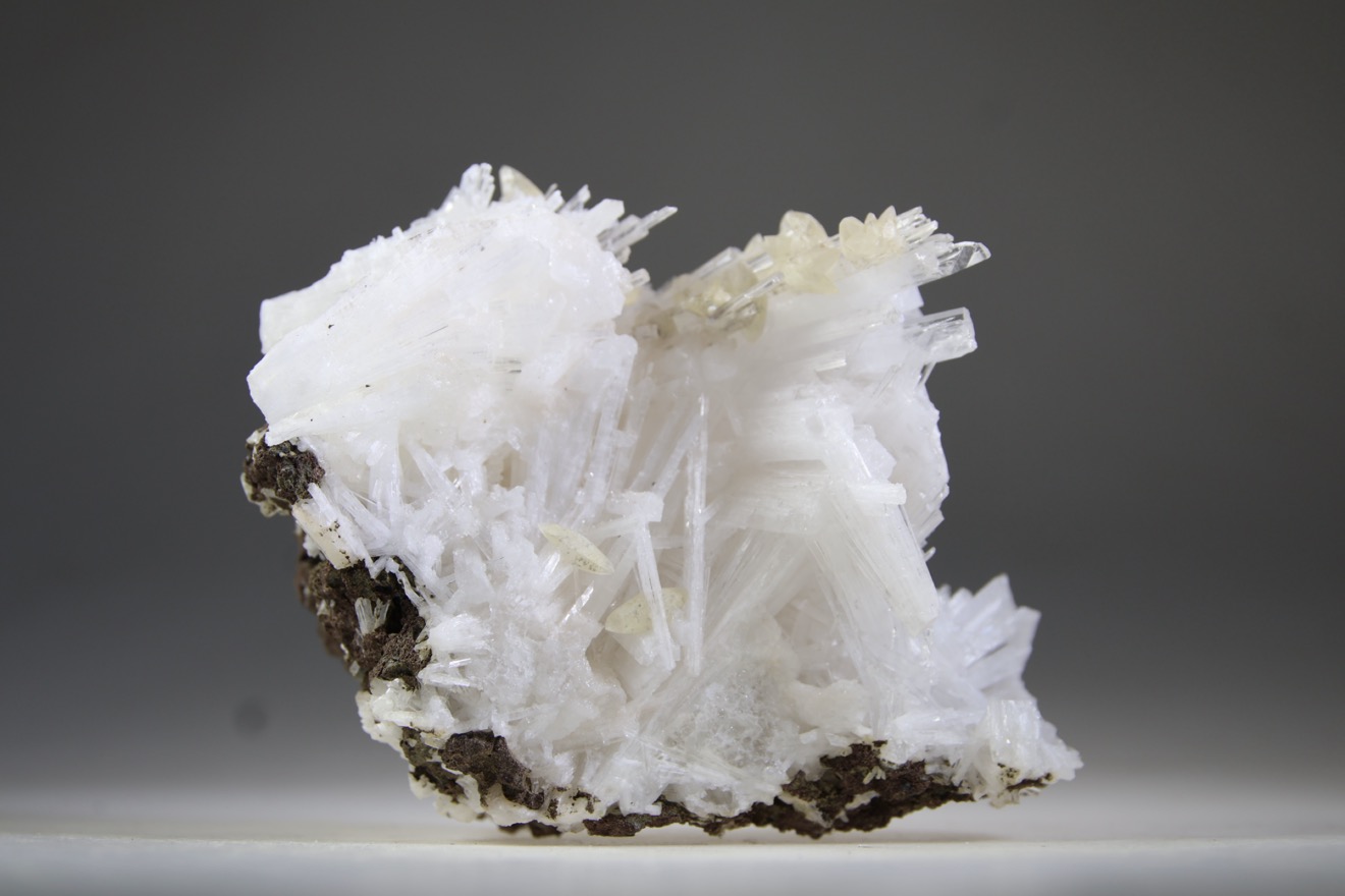 Heldere Scoleciet met mini, zacht geelgouden Stellar Beam Calcietjes zijn gevonden in het Nashik distrikt, Maharashtra, India. Dit is een unieke, zeer krachtige combinatie welke elkaars energie stralen versterkt. De Stellar Beam Calcietjes zijn net kleine ruimtescheepjes die aan de Scoleciet stralen gehecht zijn, iets wat eigenlijk bijna onmogelijk lijkt. Deze kristallen downloaden kosmische energie en versterken andere kristallen. Ze werken met de snelheid van het licht, met lichtkracht. In ons lichaam en onze aura werken ze als een oplader. Het kristal vult je aura en de ruimte om je heen met lichtstralen van een zeer hoge frequentie, waardoor negatieve energie of gedachtevormen verdwijnen. Als je met het kristal zit voel je deze veelal eerst naar je haarlijn gaan en de hogere chakra’s, waarna deze het lichaam scant. Deze kristallen hebben een laserachtige precisie, waardoor heel nauwkeurig blokkades, entiteiten of andere verdichtingen in de aura kunnen worden verwijderd. Ze kunnen de etherische blauwdruk helpen herstructureren en helpen helen. Dit is een interdimensionale steen, die je tijdens astrale reizen in contact kan brengen met buitenaardse intelligenties, tevens zorgt deze steen voor een verfijnde afstemming met je gidsen en op andere sferen. Scoleciet versterkt het hartchakra en helpt bij het uiten van liefde. Deze kristallen met een zeer hoge vibratie helpen ons los te komen uit het verhaal, helpen uit de illusie te breken. Samen met de Scoleciet kristallen op zalmkleurige matrix, die tegelijktijdig bij ons binnengekomen zijn, vormen ze een perfecte balans in energie, omdat deze laatste, nog meer verbonden zijn met de aarde. Ze vormen een liefdevolle bedding en samen helpen ze ons om in het Nu uit te komen. Het is belangrijk dat we onze ervaring van dit leven op aarde helemaal kunnen omarmen, maar tegelijkertijd gaan herinneren wie we zijn; Kosmische, goddelijke lichtwezens. Lichamelijk werkt dit kristal energetisch sterk op de schildklier en het endocriene systeem.