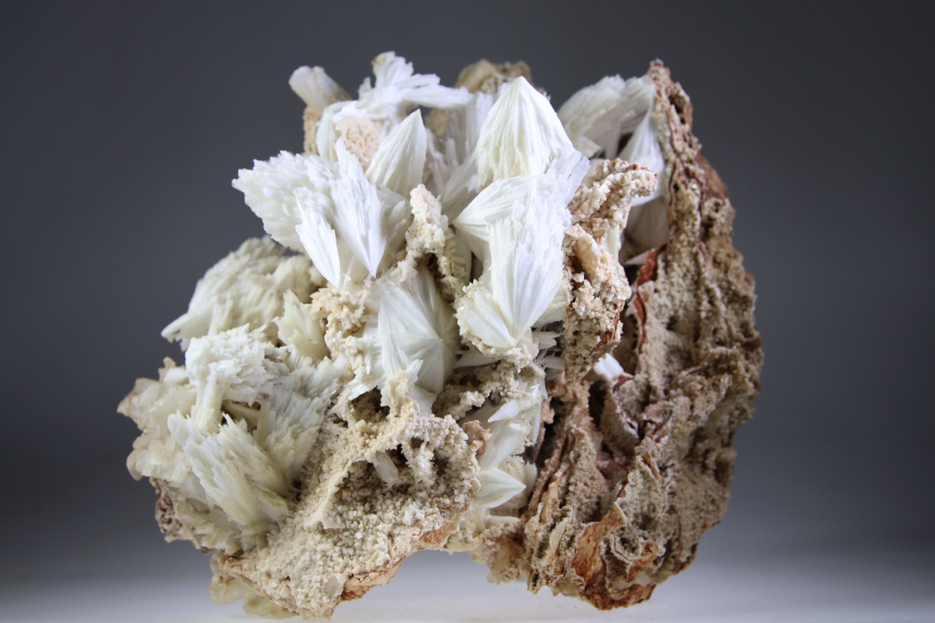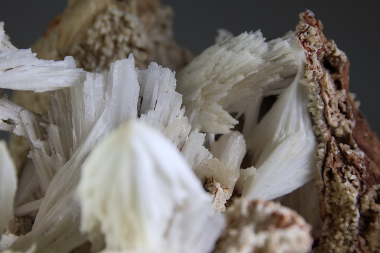 Deze mooie clusters van Scoleciet kristallen zijn verbonden met zalmkleurig moedergesteente. Ze hebben een zeer zachte, liefdevolle energie. Ze zijn een zachte landing, een liefdevolle bedding. Niet alleen energetisch, maar visueel is de combinatie ook prachtig. Ze zijn gevonden in het Nashik distrikt, Maharashtra, India. Deze Scoleciet kristallen zitten in tegenstelling tot die met Stellar Beam Calcietjes nog verbonden met de aarde. Het is alsof ze een meer aardse, geïncarneerde vorm van Scoleciet zijn. Maar al wel in een volmaakte verstilling. Ze helpen ons meer te aarden, in onze basis te komen. Ze laten ons voelen dat ze hier niet ‘vastzitten’ maar in liefde er ‘Zijn’. Ze helpen ons verzachten, meer in de ‘vrouwelijke’, gevoelsenergie te komen. Scoleciet is een zeer zachtaardig kristal van innerlijke vrede, het is als een balsem voor iedereen met angsten, stress en paniek. Dit kristal helpt je hart te openen en oude pijnen los te laten, te gaan leven vanuit je hart en meer spontaan liefde in het dagelijkse leven te uiten. Scoleciet geeft innerlijke rust en vrede en is behulpzaam bij heling sessies en meditatie. De energie van de heldere Scoleciet met Stellar Beam Calciet, welke tegelijk bij ons is binnengekomen, verhoogt onze trilling en lijnt ons uit met onze hogere delen, terwijl deze Scoleciet op matrix ons helpt om in liefde hier te zijn. Omdat deze kristallen de zeer hoge energie van de Scoleciet met Stellar Beam Calcietjes aardt maakt dat ze samen een cohesie, een fantastische combinatie zijn, die heel goed samenwerkt, want we hebben de weg naar verlichting toch door het lichaam, door de stof te doen. Het is belangrijk dat we zowel onze ervaring van dit leven op aarde helemaal kunnen omarmen, maar tegelijkertijd gaan herinneren wie we zijn; Kosmische, goddelijke lichtwezens. Scoleciet is verbonden met het pure Witte Licht dat ons kan helpen te ontwaken. Ook kan er diepere vereniging met het Witte Licht optreden, rustend in golvende, zachte stromen wat een bewustzijn van liefde is. Zo liefelijk en heilig dat men daar altijd zou willen blijven, maar deze ervaring is meer een initiatie die ons laat zien dat deze trilling/energie een deel van ons is. In verbinding zijn met deze energie werkt herstellend, zodat we onze levensreis versterkt met liefde en licht kunnen voortzetten.