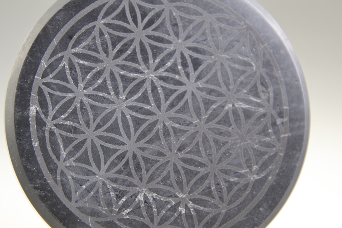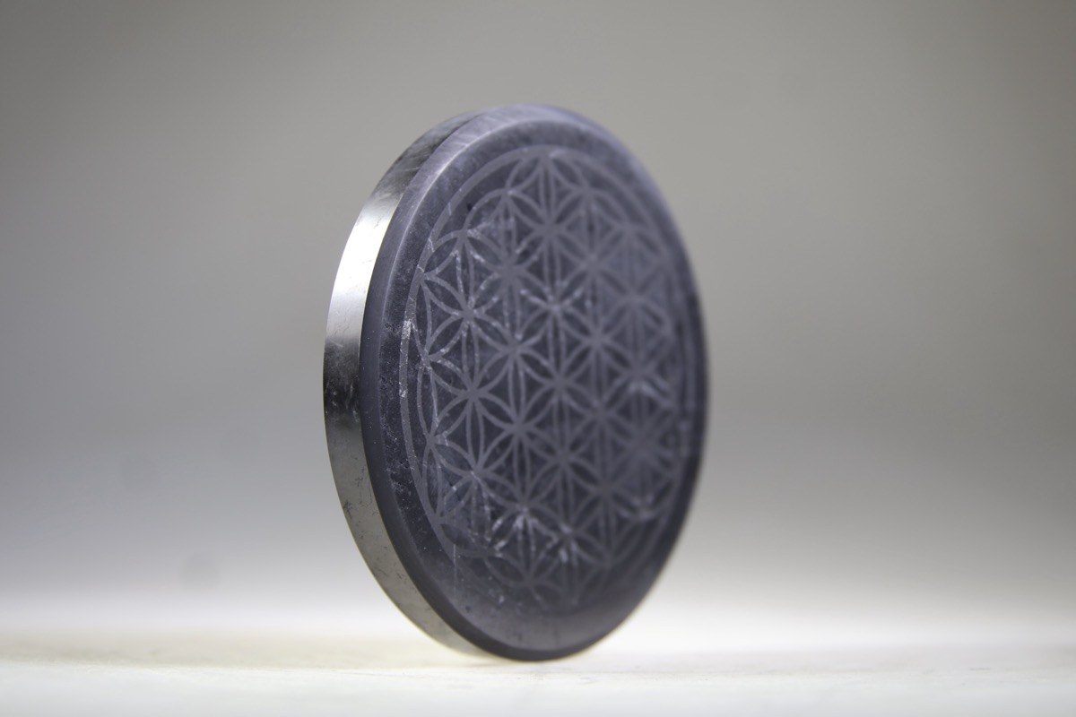 Shungit oplaadschijf gepolijst ‘flower of life’